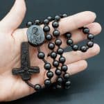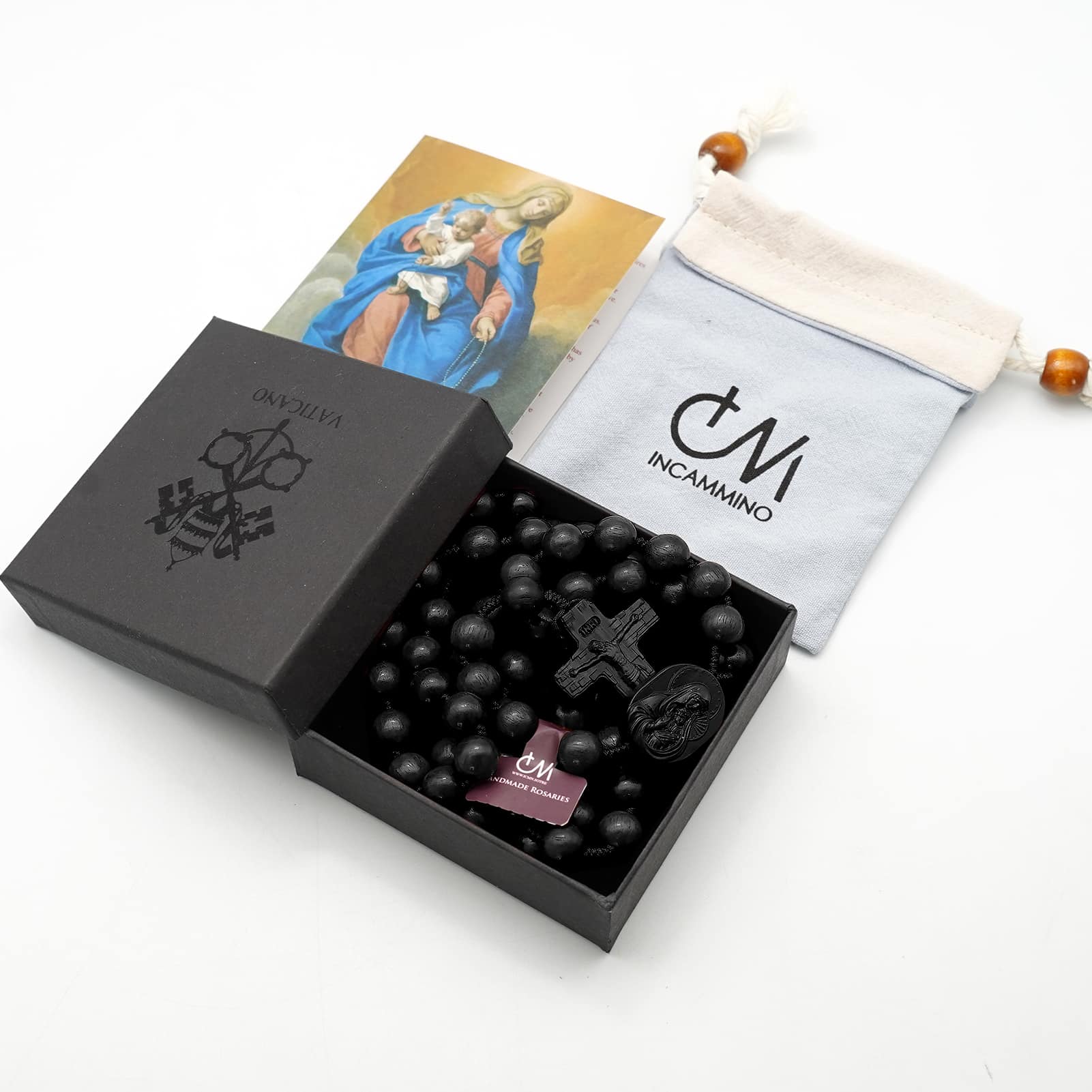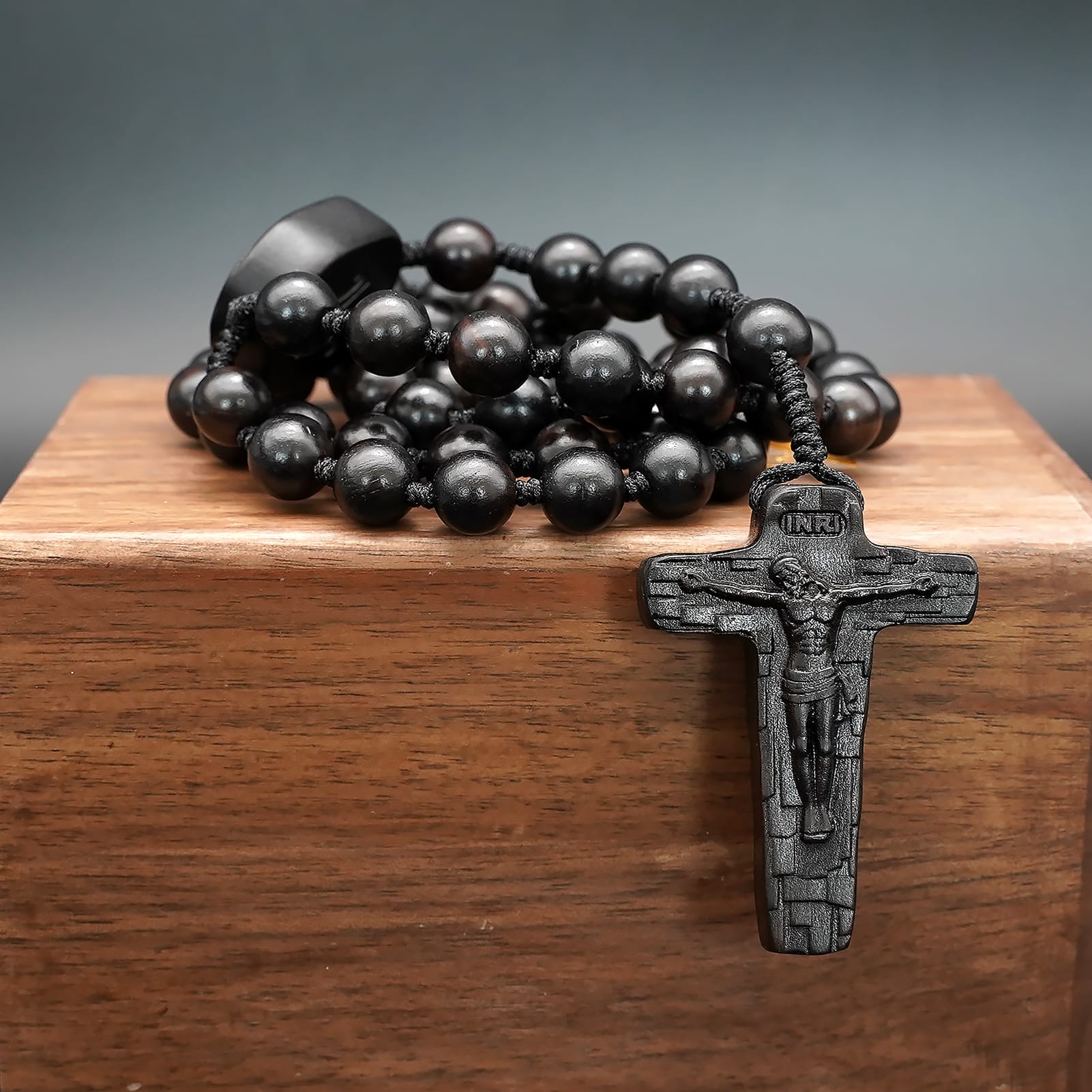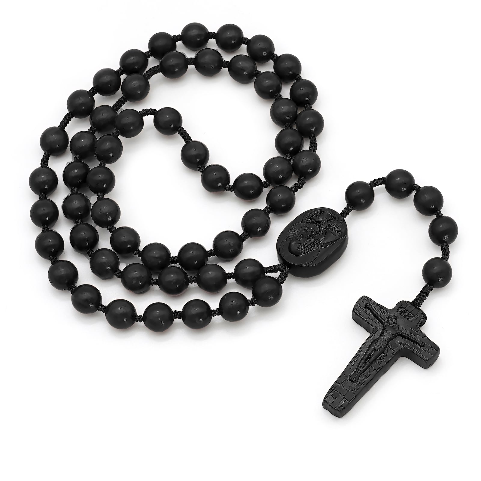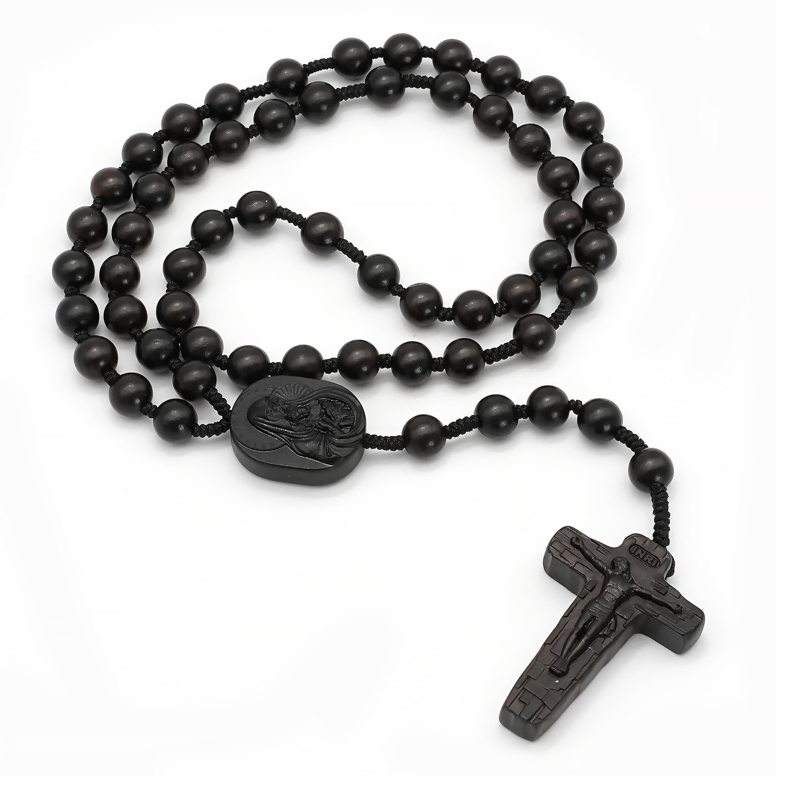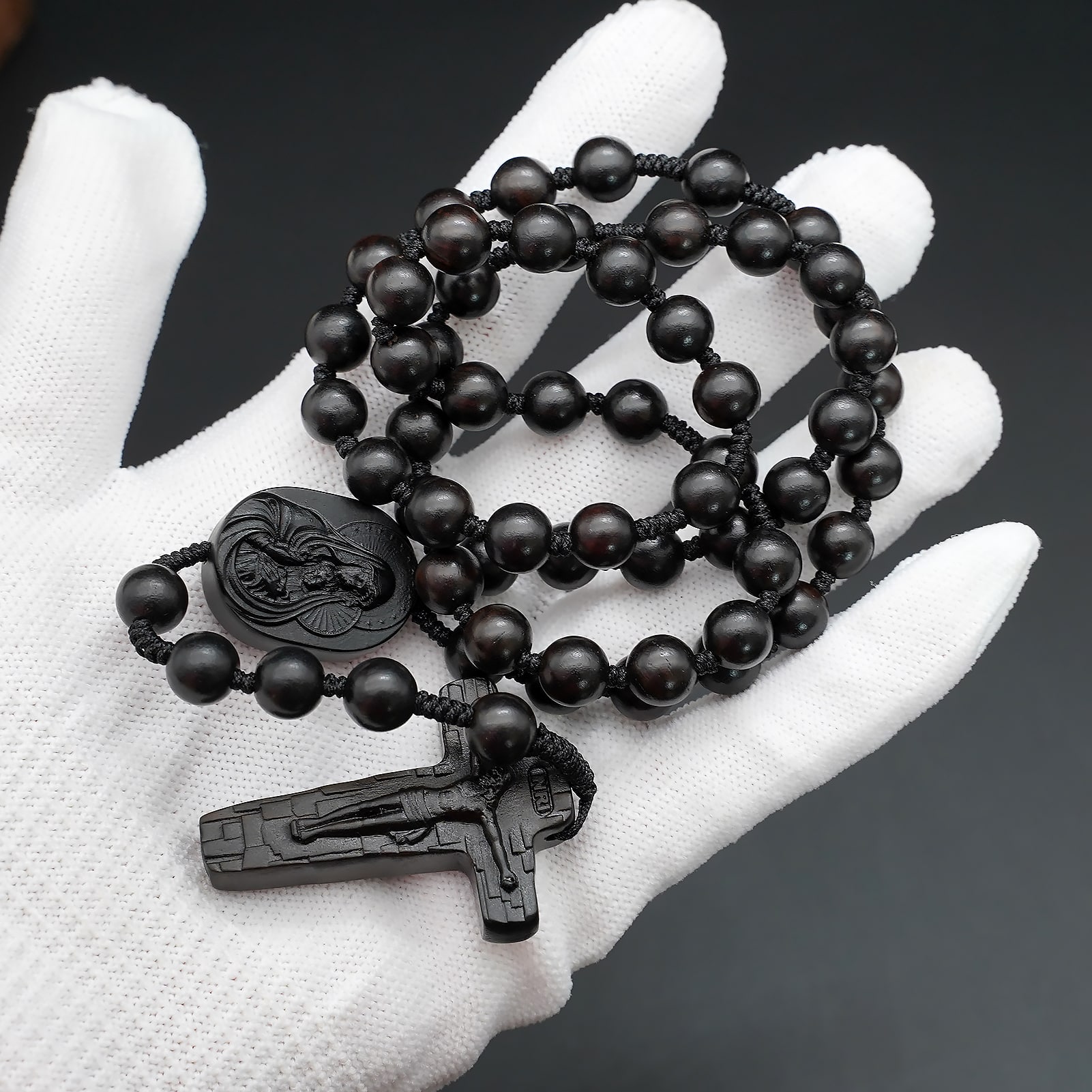 玫瑰念珠-黑檀木-圣母抱耶稣-手工绳编-8/10mm