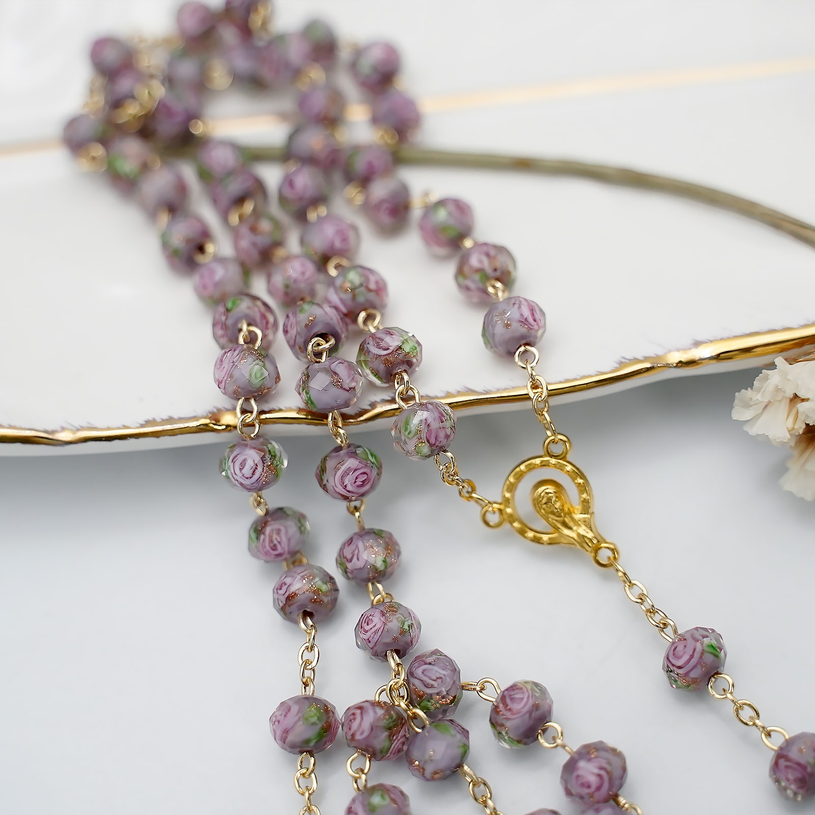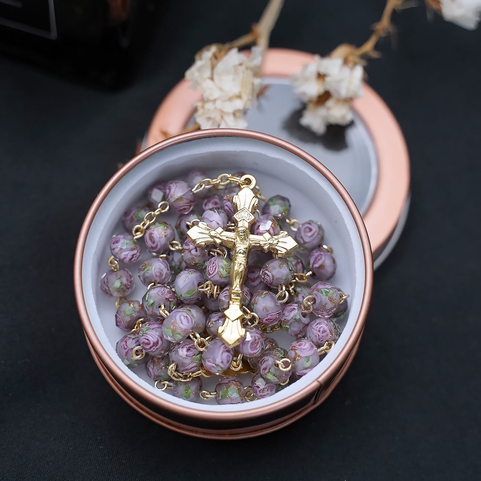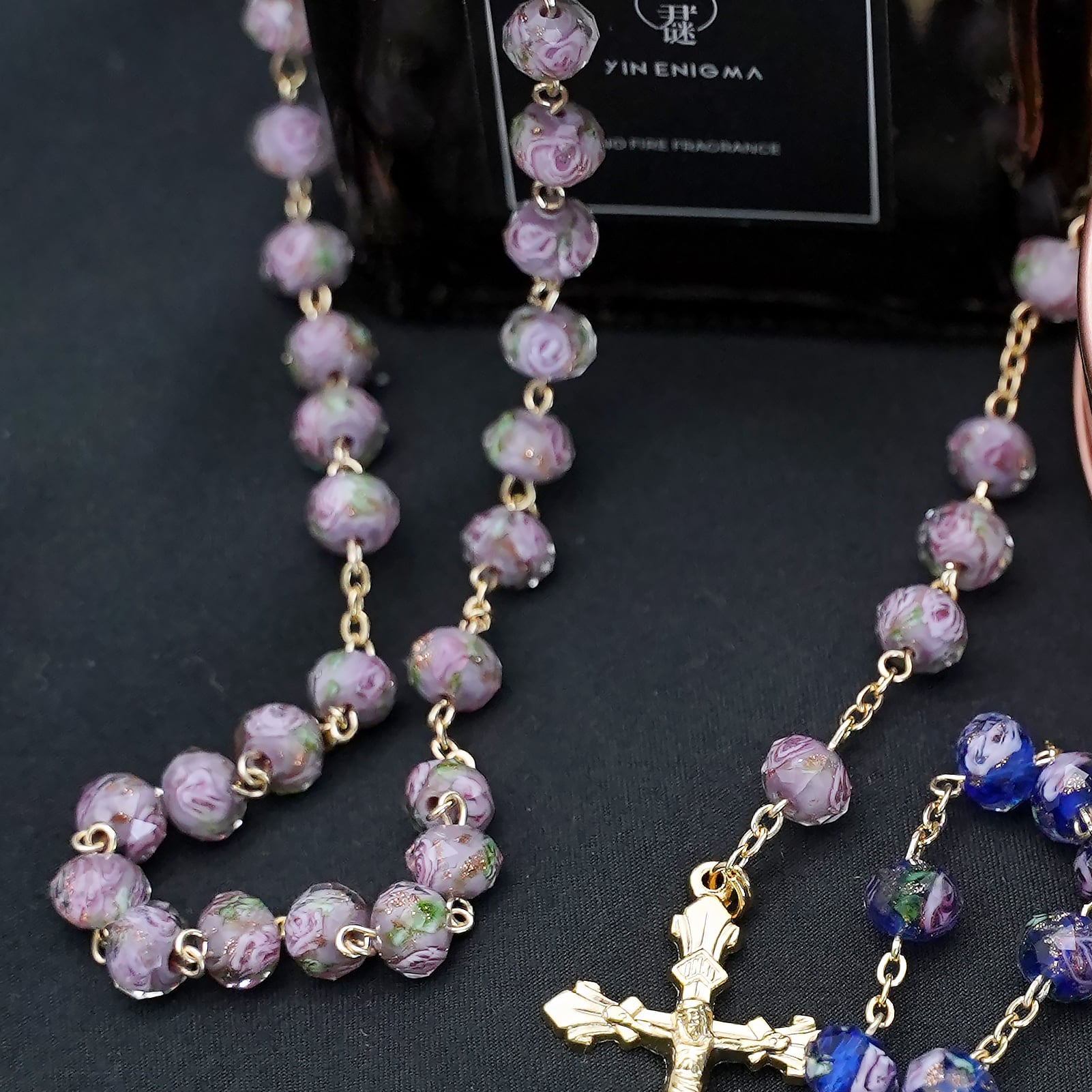 玫瑰念珠-灰色琉璃内花原创-8mm珠