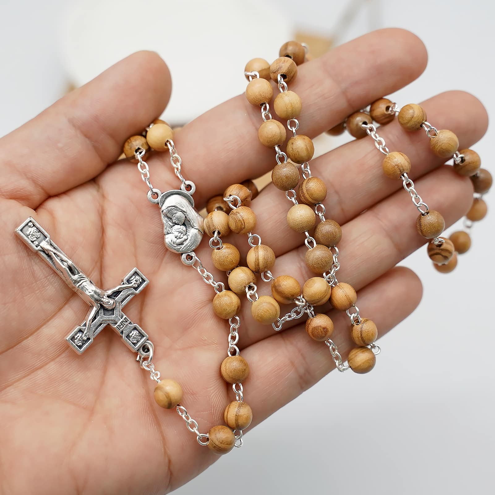 玫瑰念珠-链式橄榄木-锌合金配件-6/7mm
