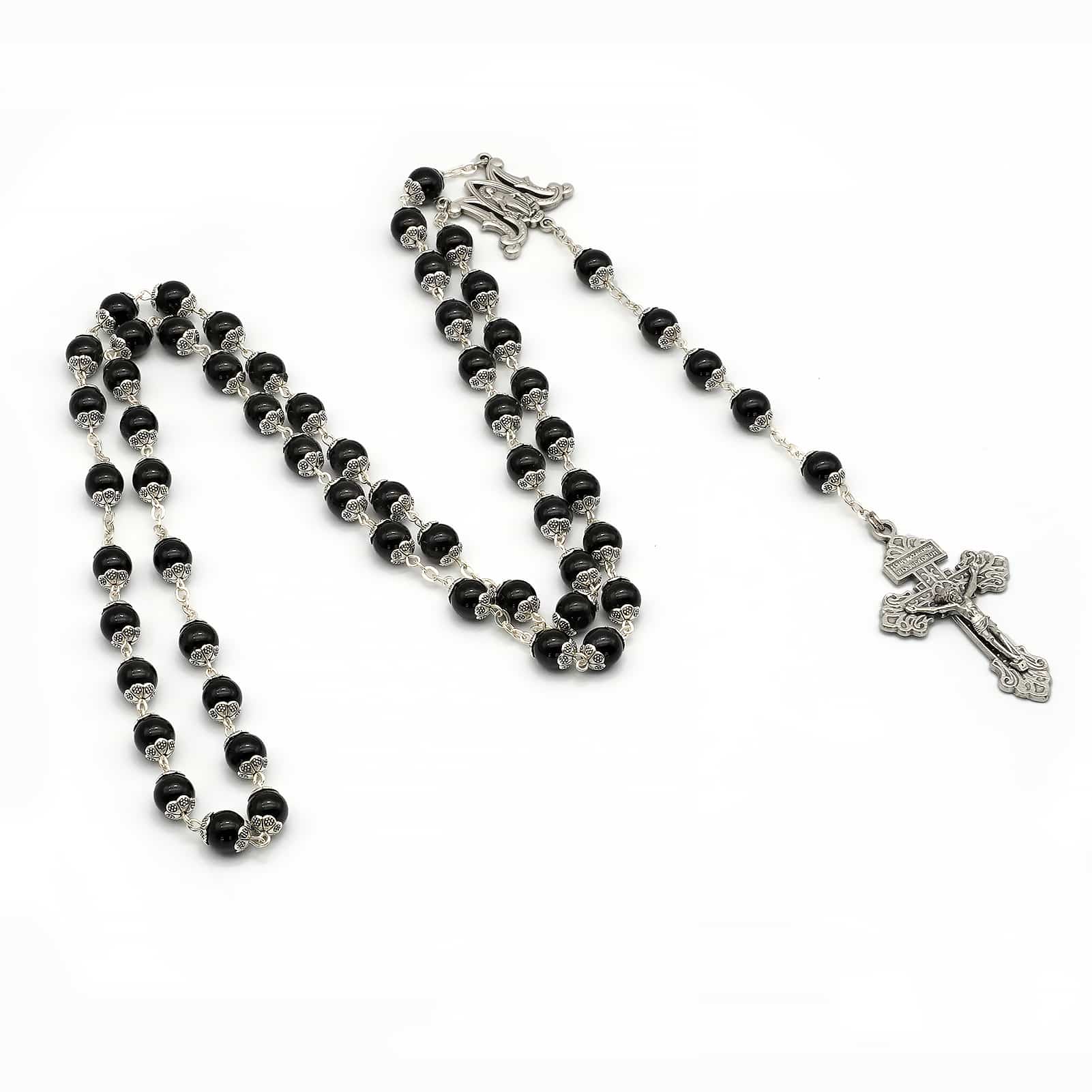 Discover the beauty and spiritual significance of this 8mm Black Agate Rosary with Italian-Made Butterfly Miraculous Medal Centerpiece and Crucifix. Each bead is crafted from polished black agate, measuring 8mm (approximately 0.31 inches), offering a sleek, timeless appearance and exceptional durability.