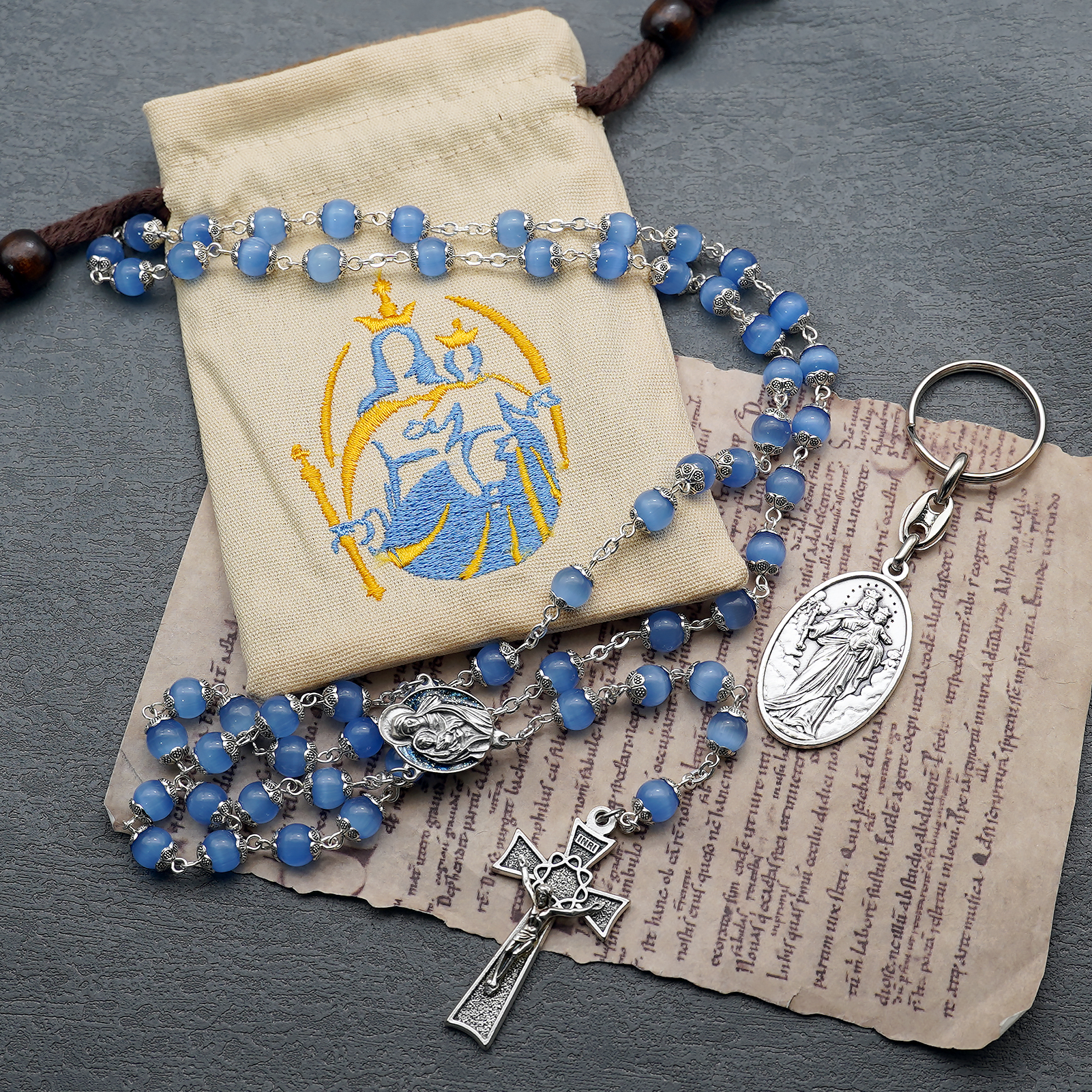 套装组合-玫瑰念珠-原创蓝猫眼-钥匙扣