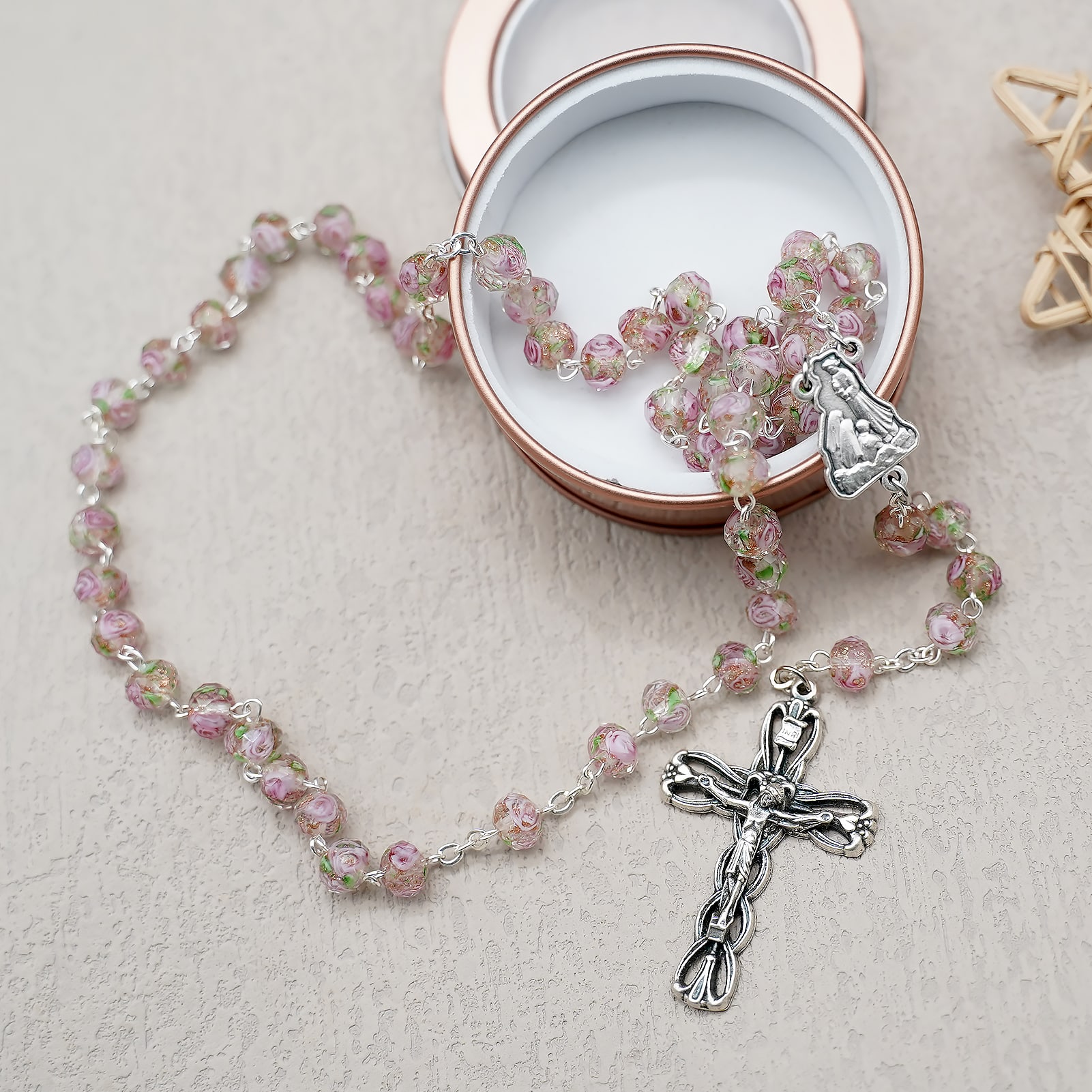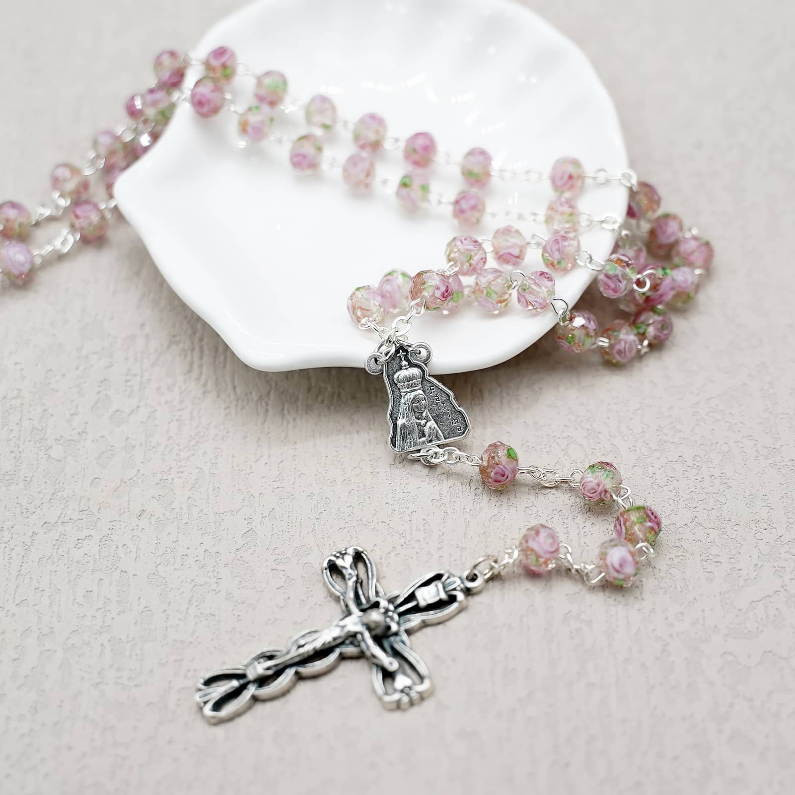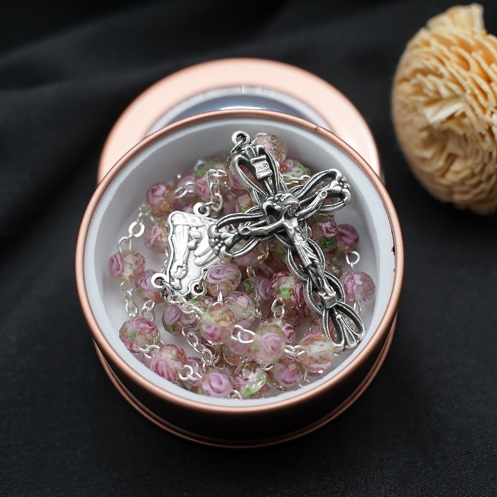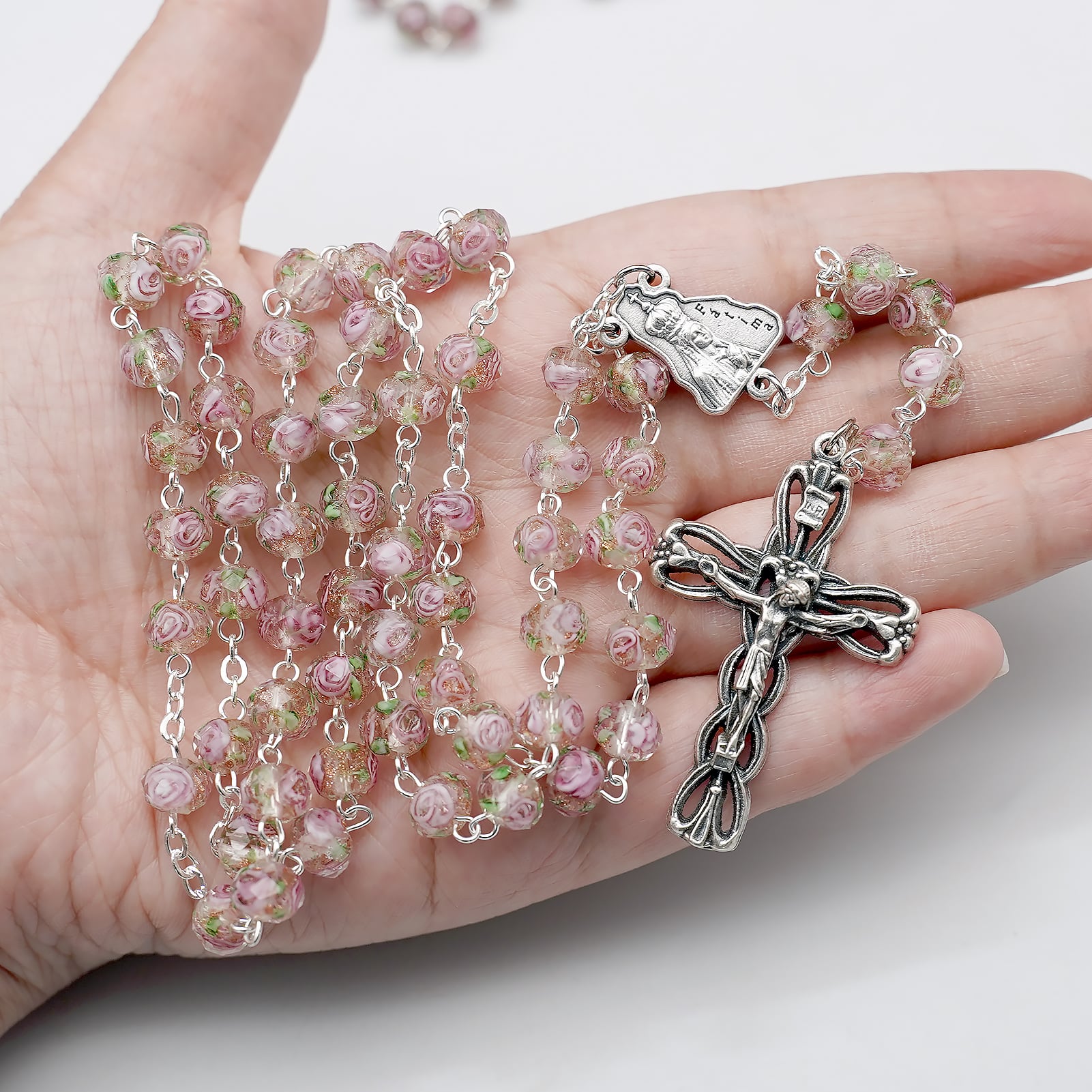 玫瑰念珠-法蒂玛+圣母领报-琉璃花珠原创-5x8mm珠