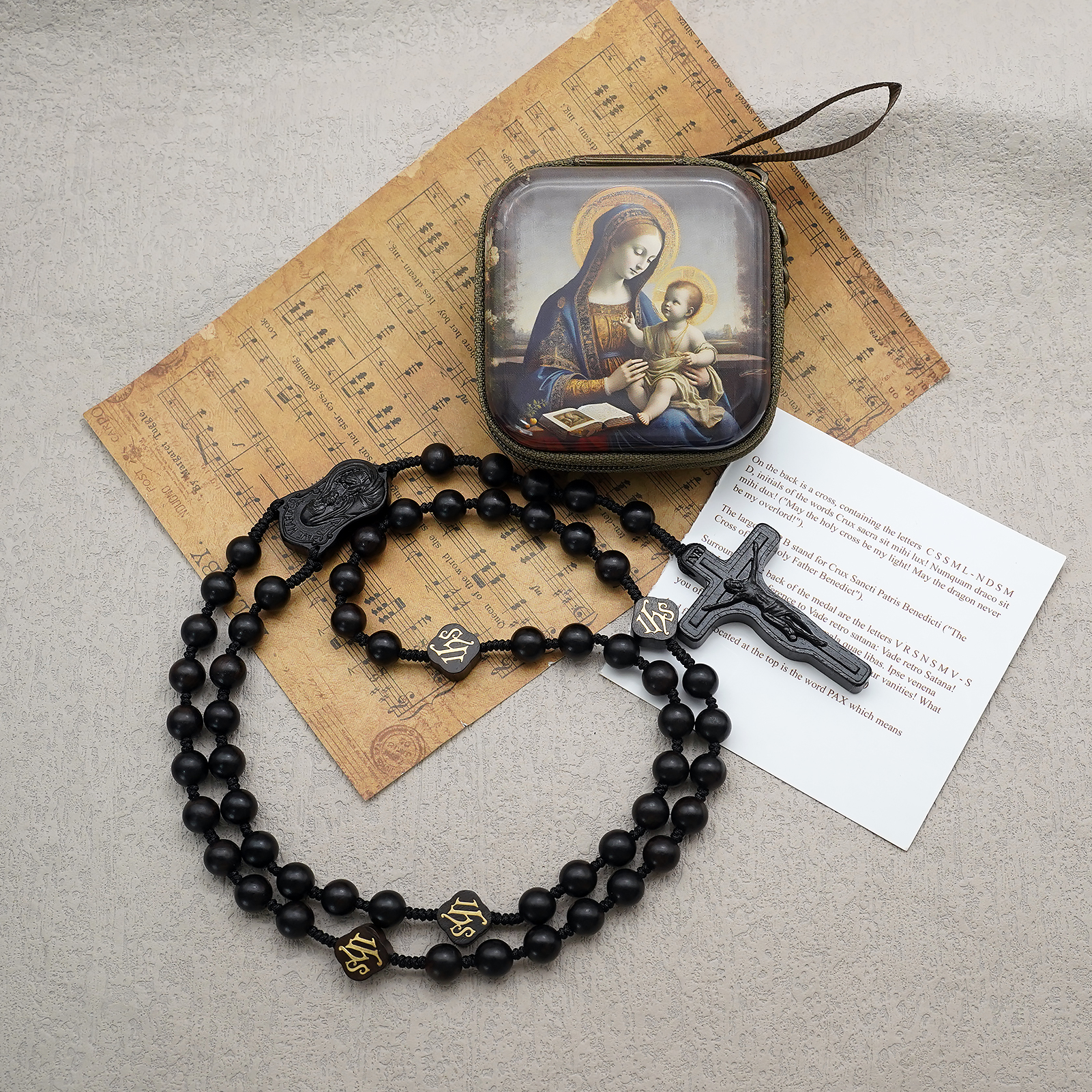 玫瑰念珠-万福圣母-JHS-黑檀木-8mm-珠送念珠包