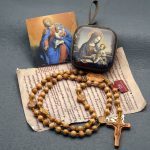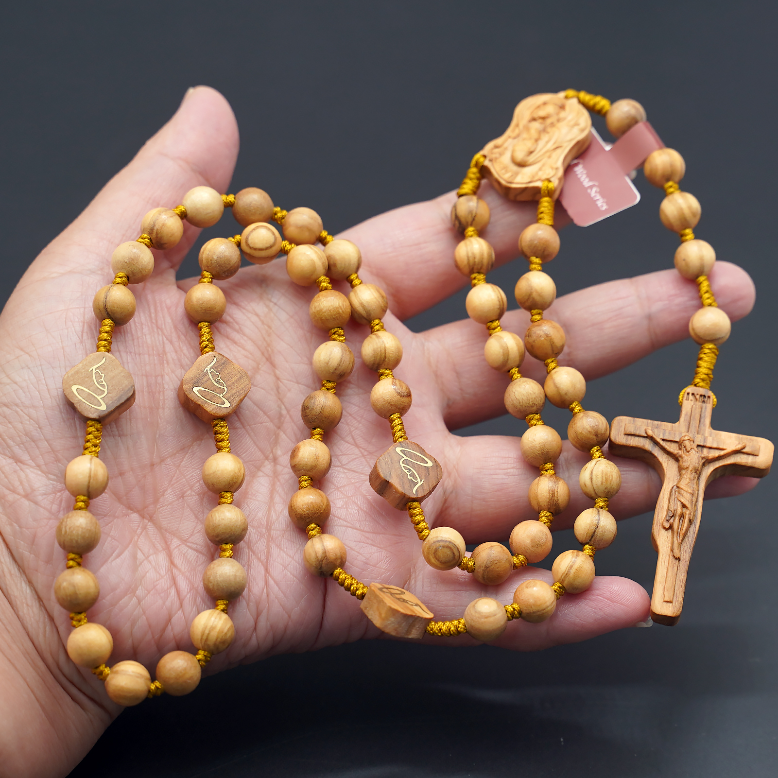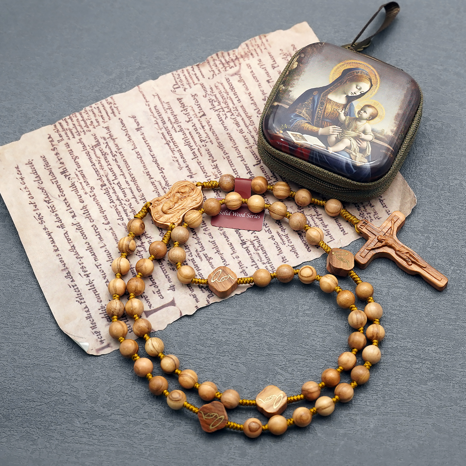 玫瑰念珠-万福圣母-橄榄木-绳编-8mm-珠送念珠包