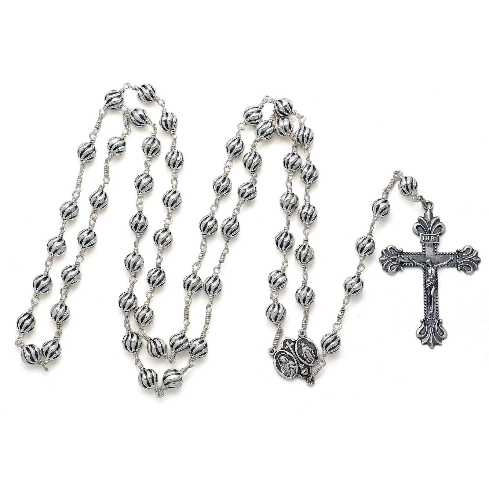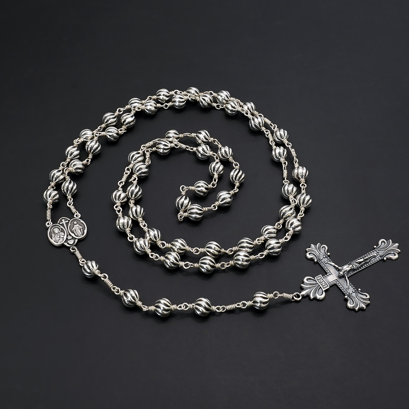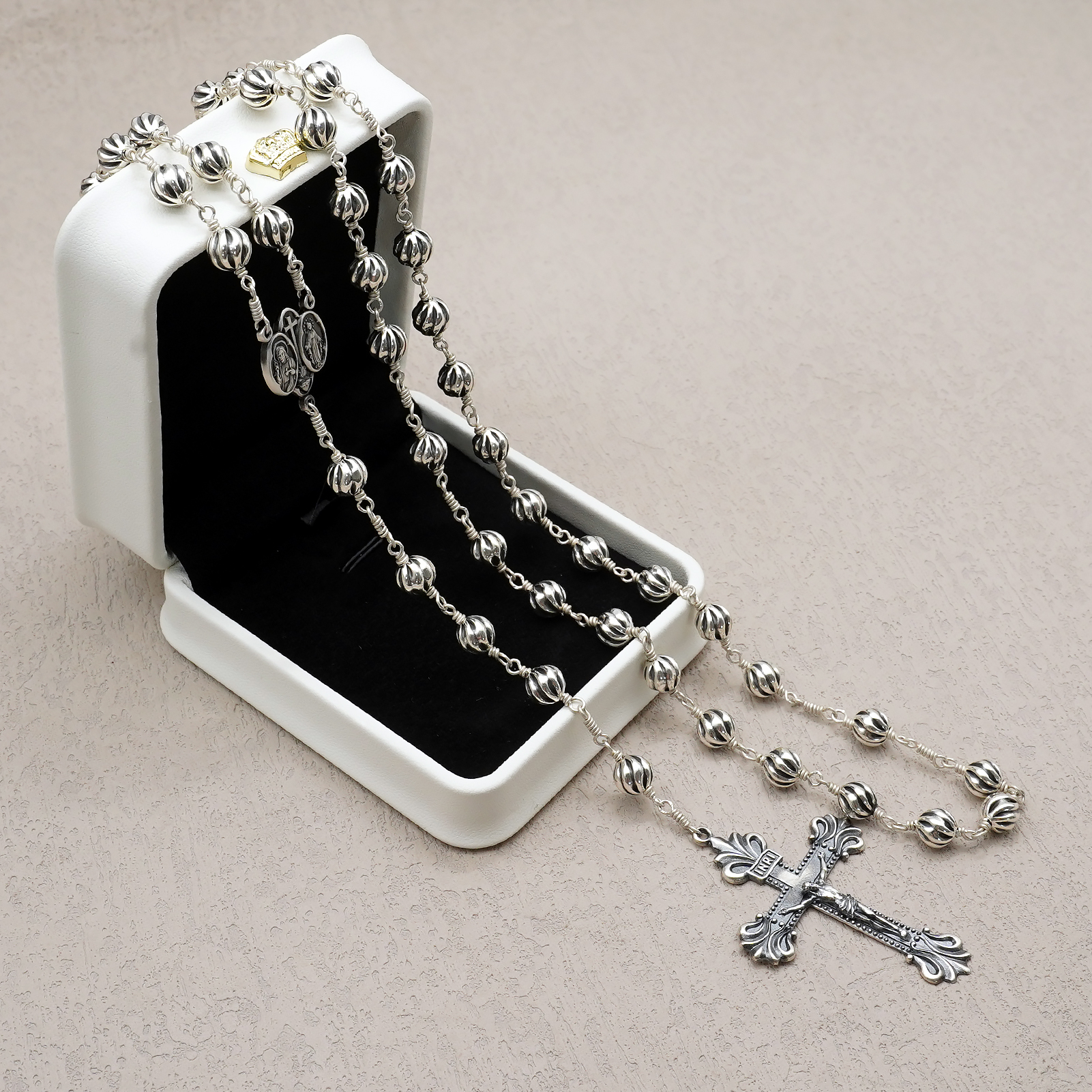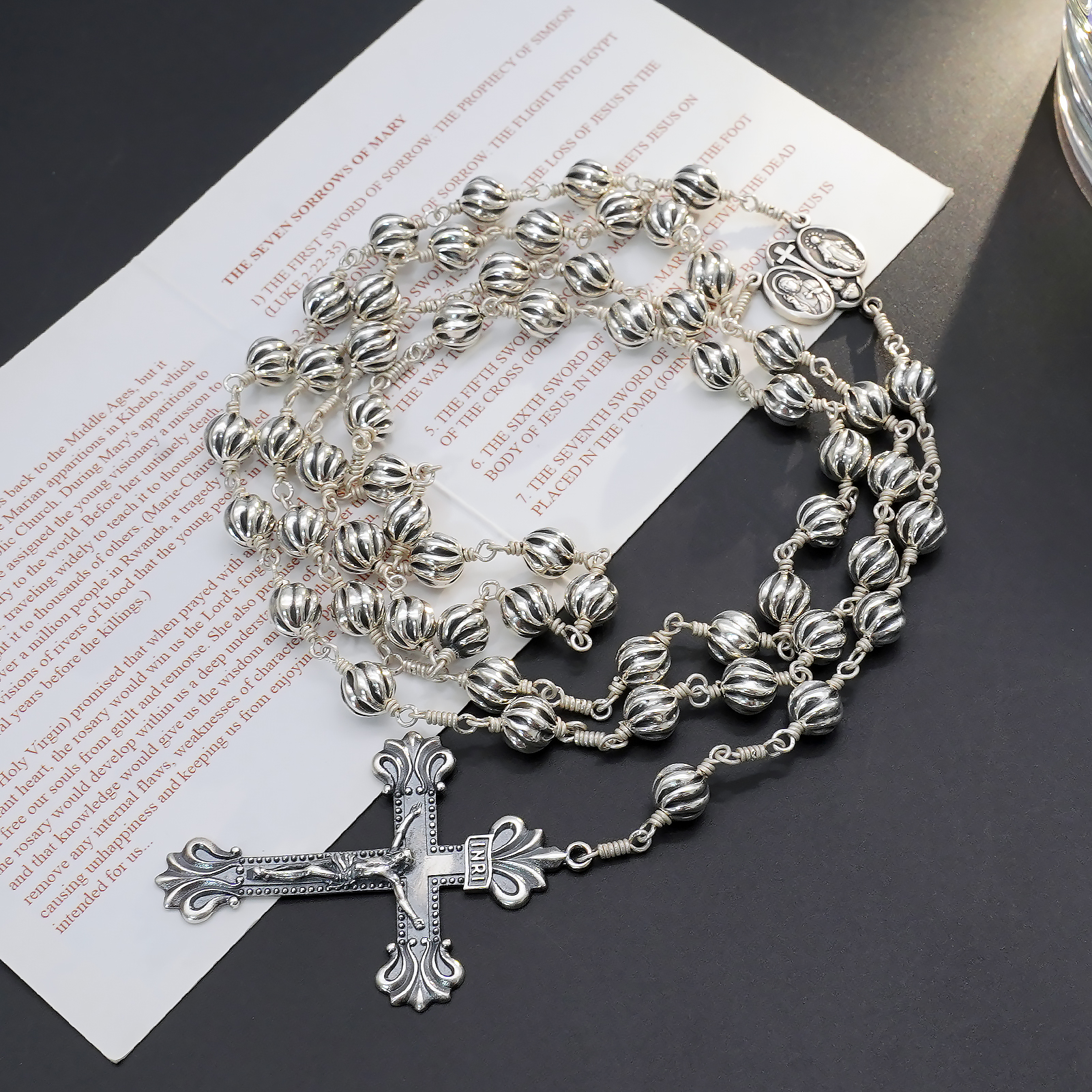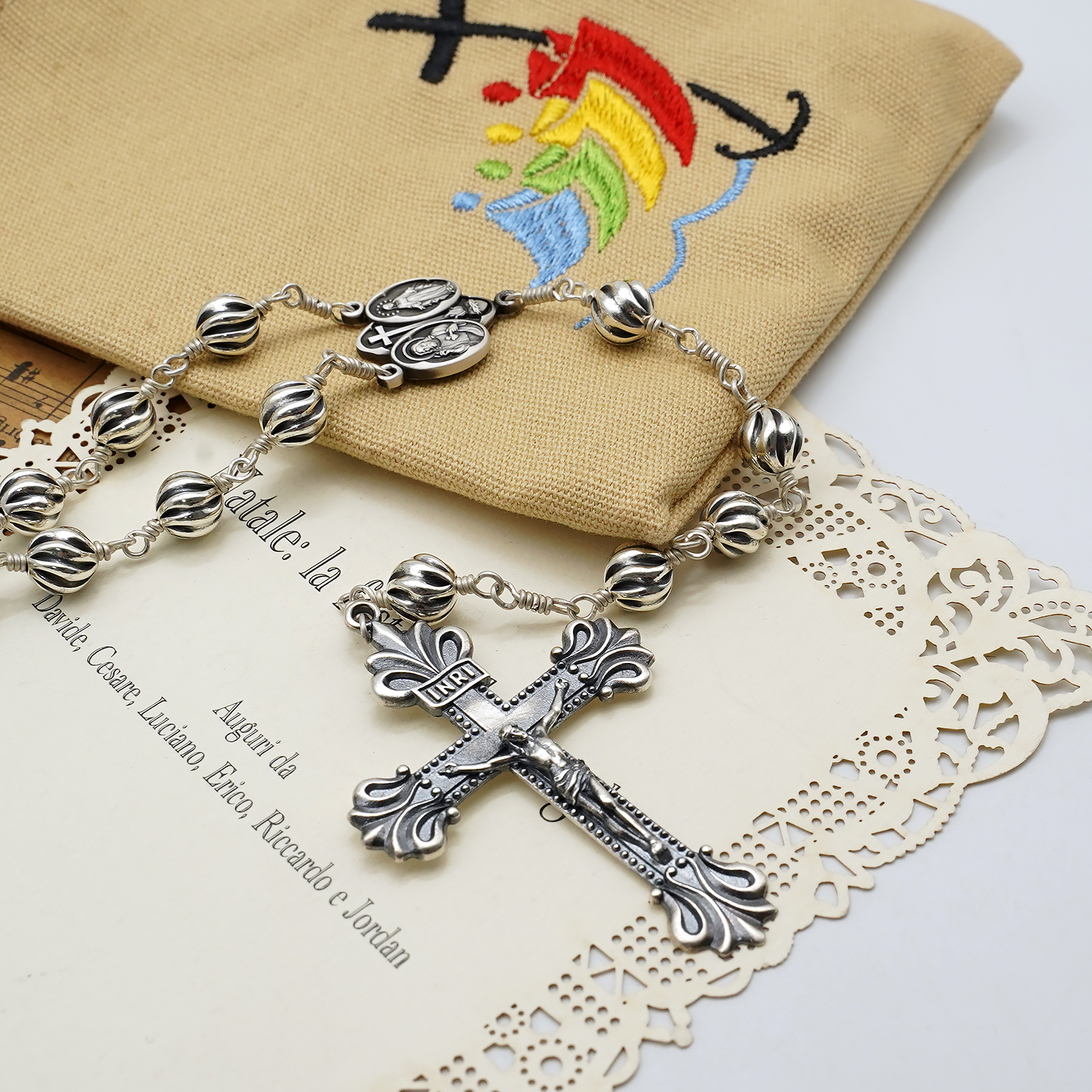 玫瑰念珠-圣衣圣母-925银-7mm银珠 银念珠送念珠包