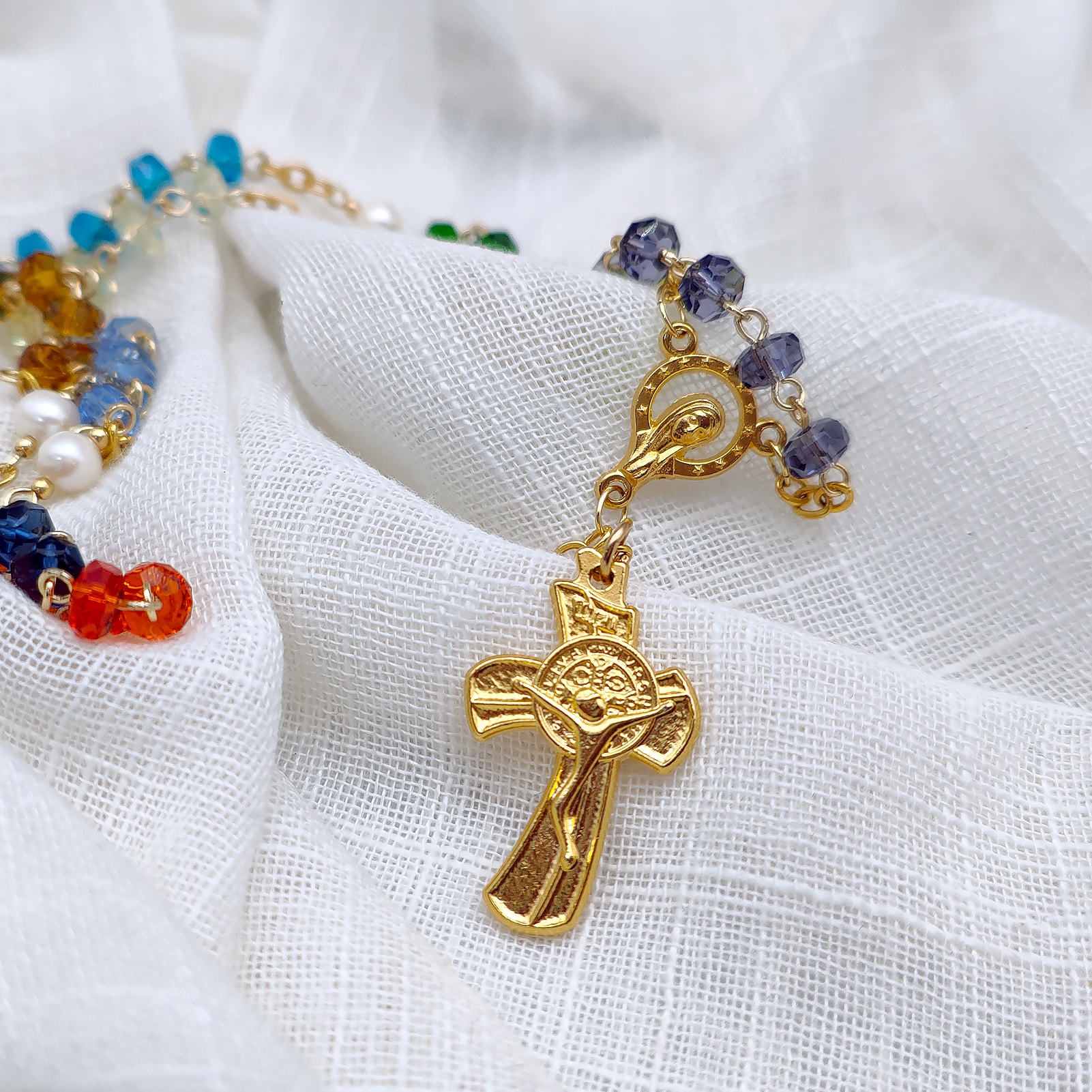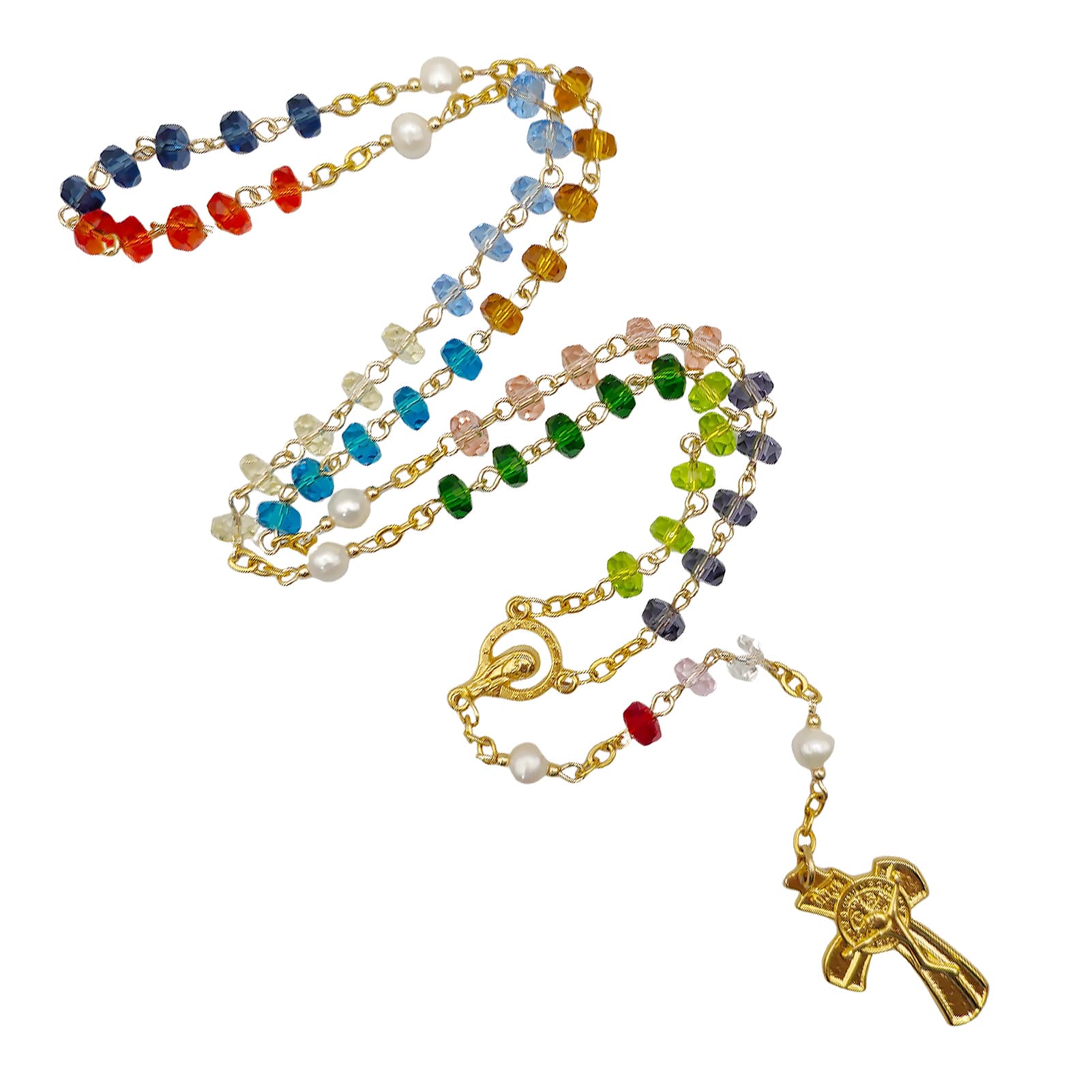 玫瑰念珠-七彩水晶珍珠-链式-0.7cm
