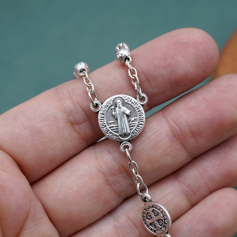 Rosary Beads- Saint Benedict – Beads – 4mm (With Sacred Heart Pouch)