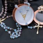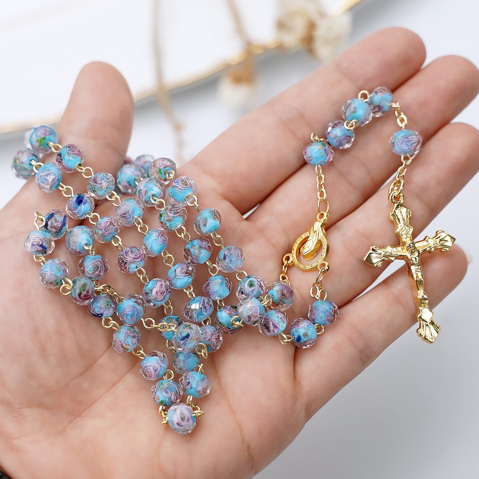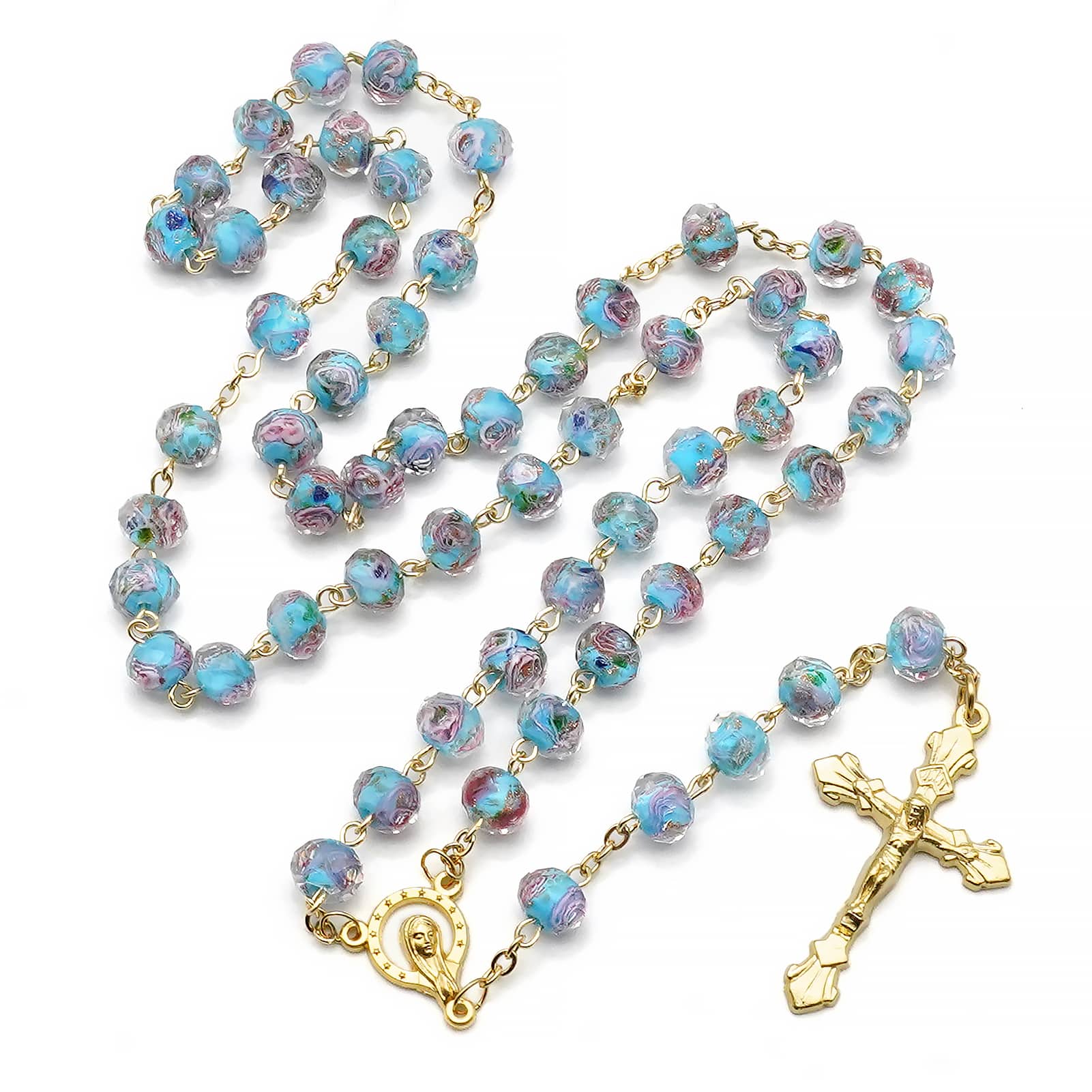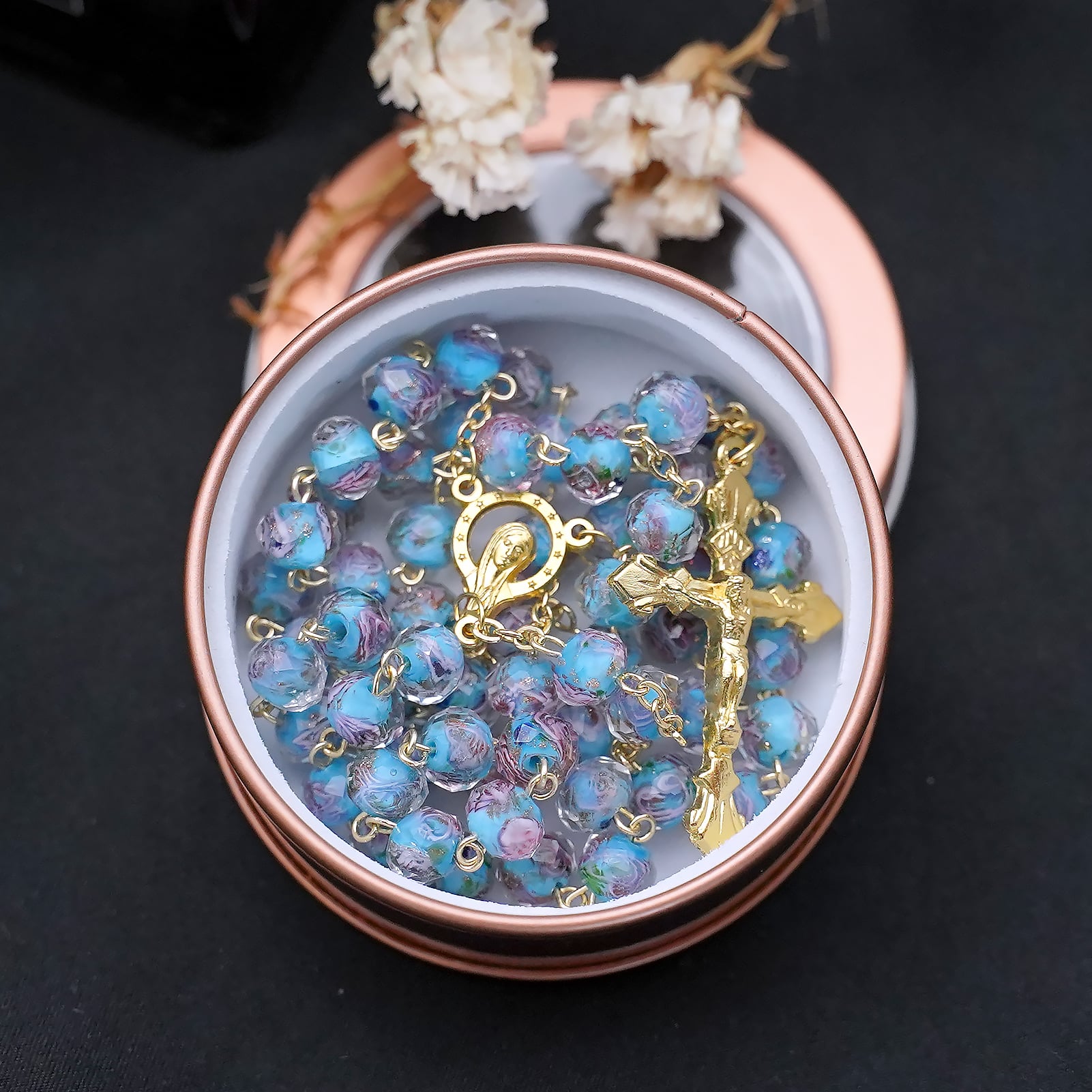 玫瑰念珠-天蓝色琉璃内花原创-8mm珠