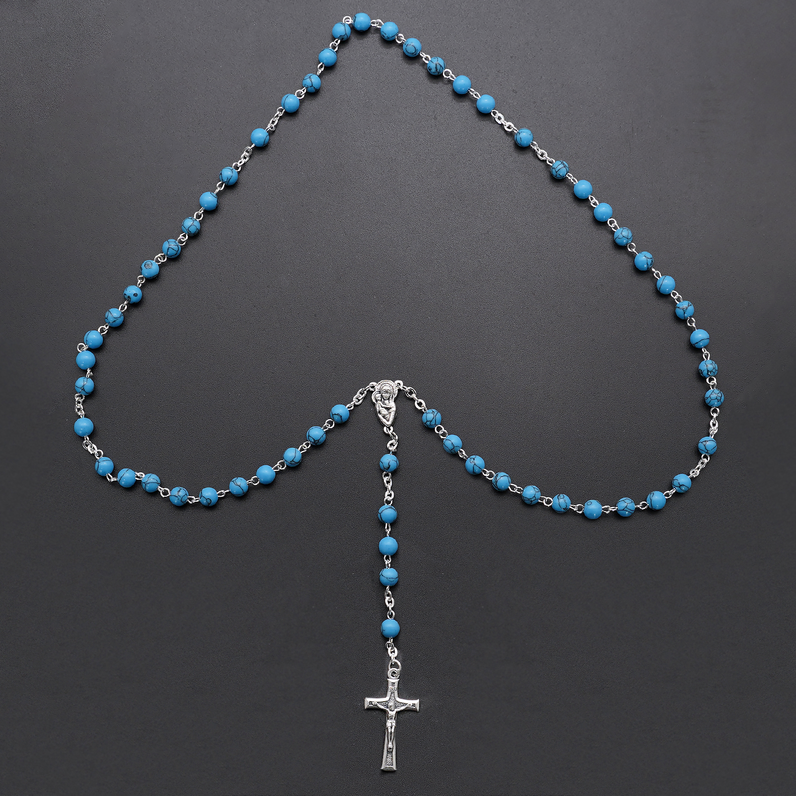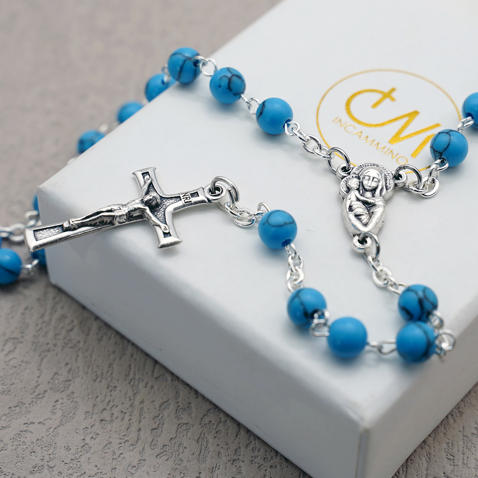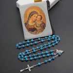 玫瑰念珠-圣母抱YS-耶稣圣心-蓝松石6mm送念珠包