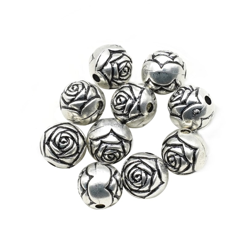 DIY珠子-玫瑰花-亚克力-银色-0.9cm-10颗/包