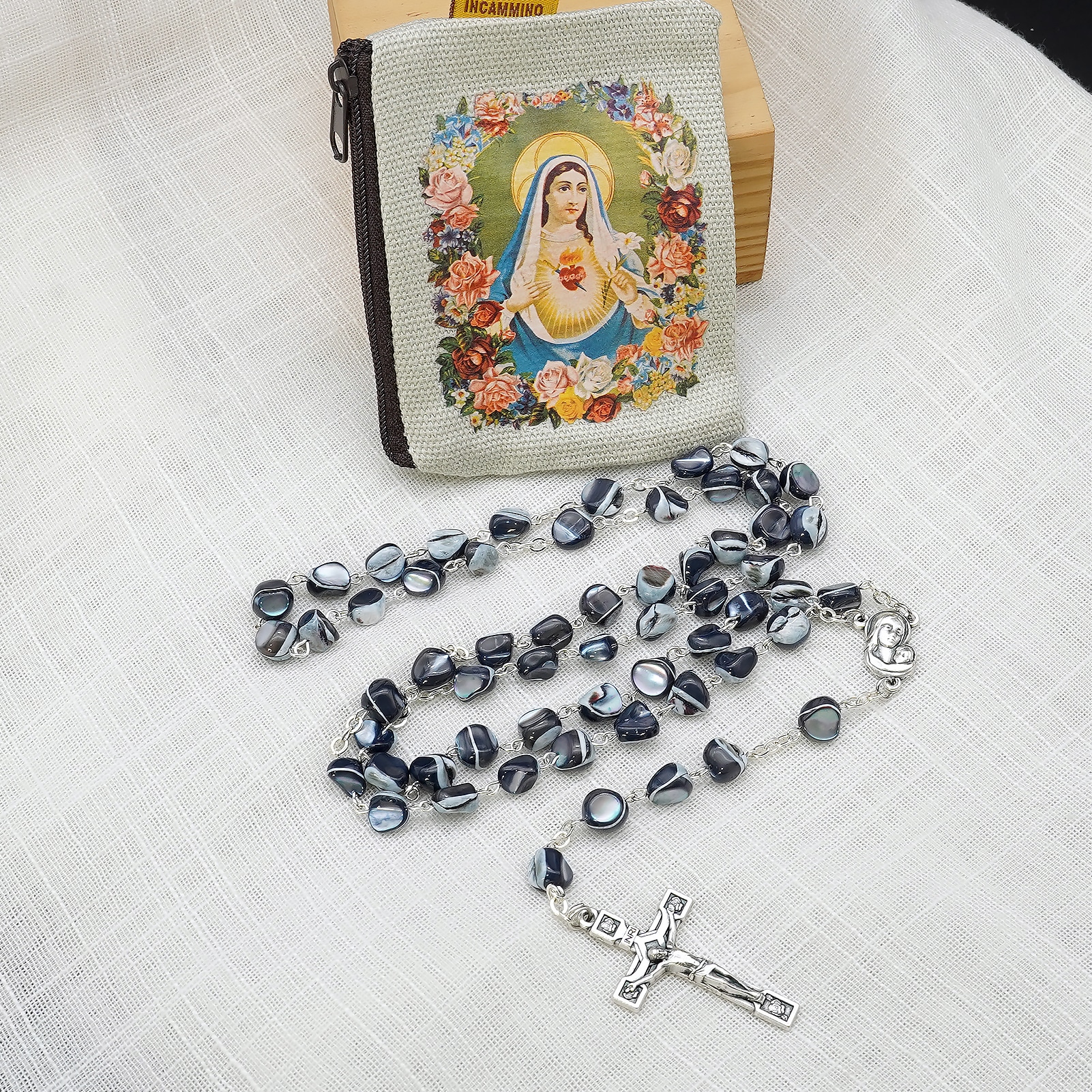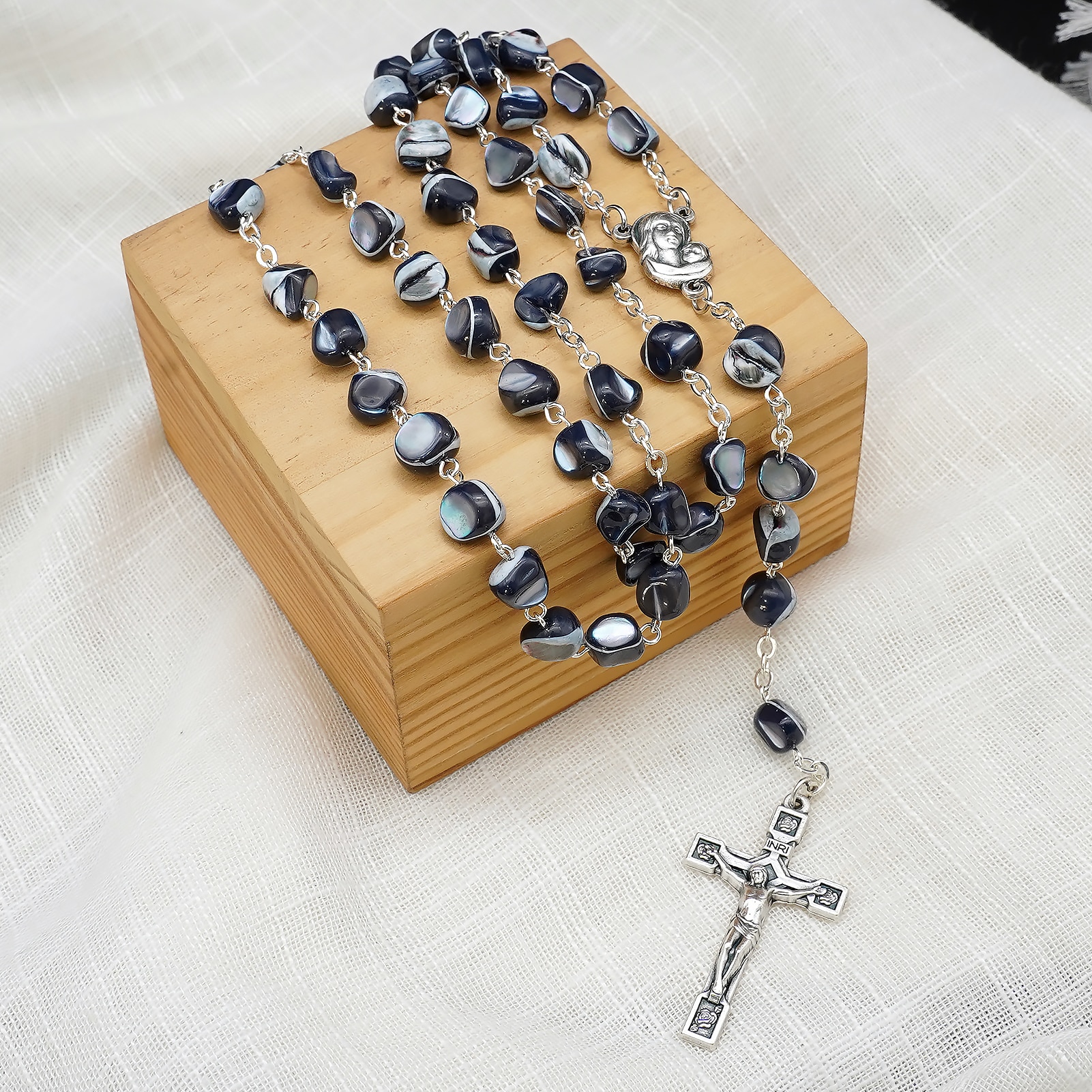 玫瑰念珠-黑色不规则贝壳珍珠-7mm-链式