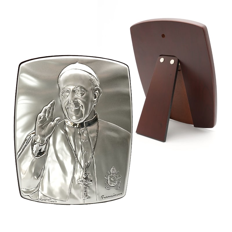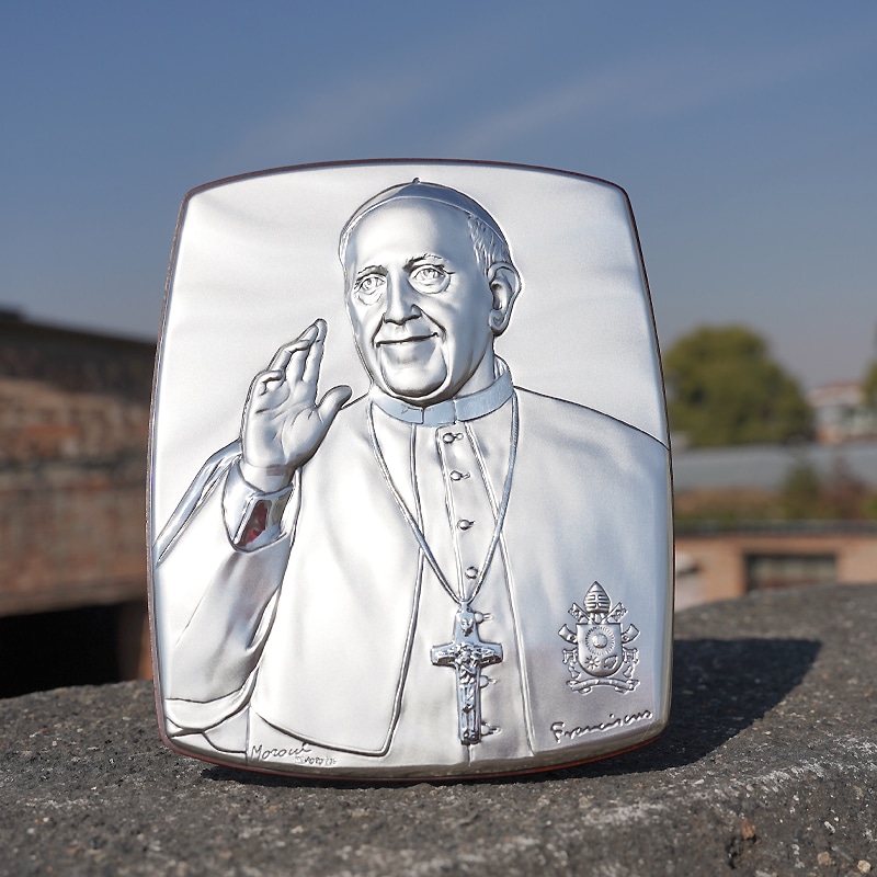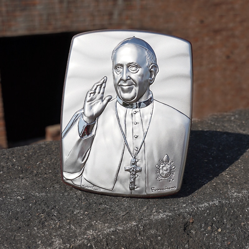 银浮雕圣像-椭圆形-教宗方济各-18x14cm
