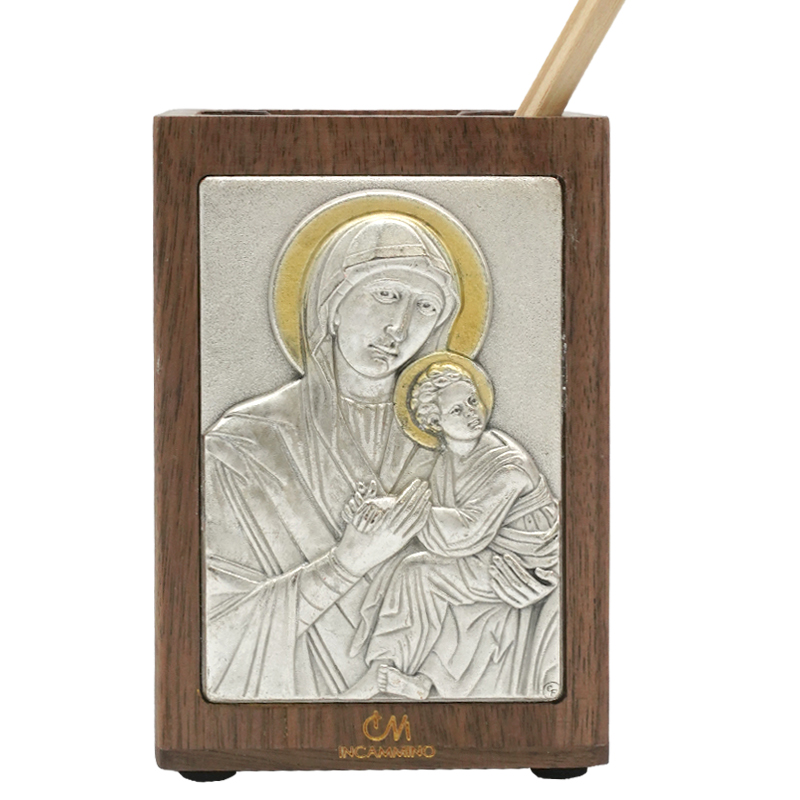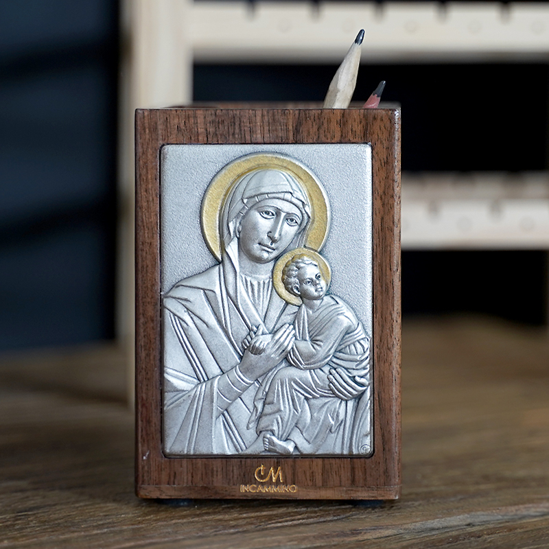 笔筒-浮雕圣像-圣母抱子-胡桃木特制纪念款-11×7.5×7.5cm