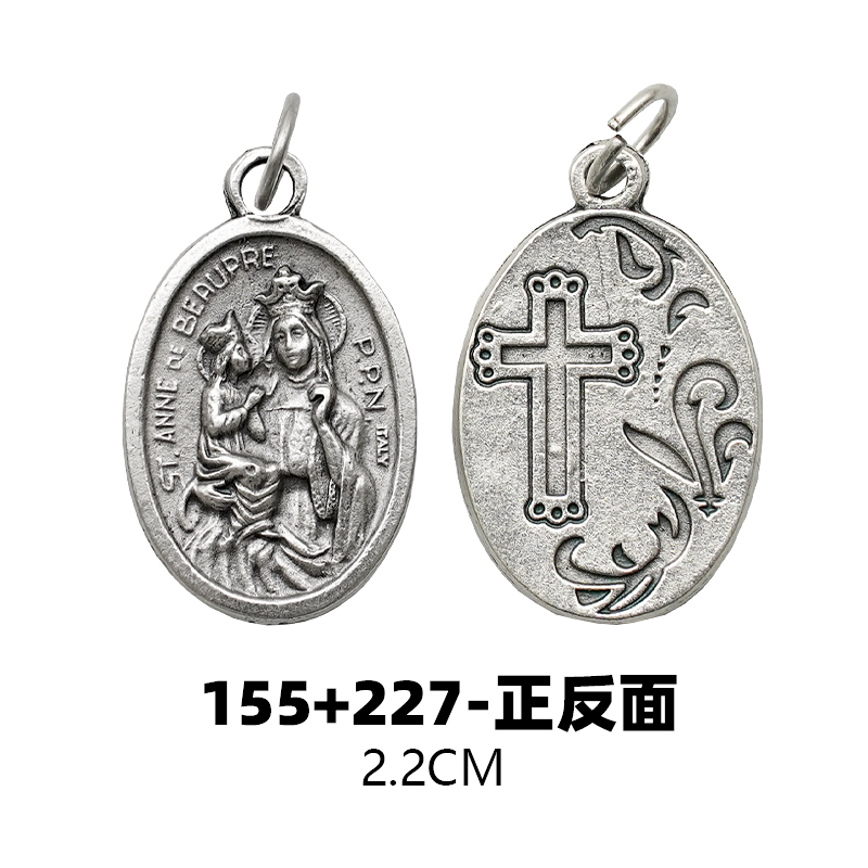DIY小吊牌-圣亚纳·德博普雷+十字架和花-锌合金-2.2cm