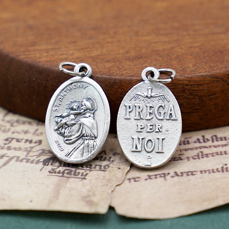 Authentic alloy silver plated St. Anthony Holy Spirit medallion, made in Italy. Perfect for DIY projects or adding to a rosary. Height: 2.2 cm.
