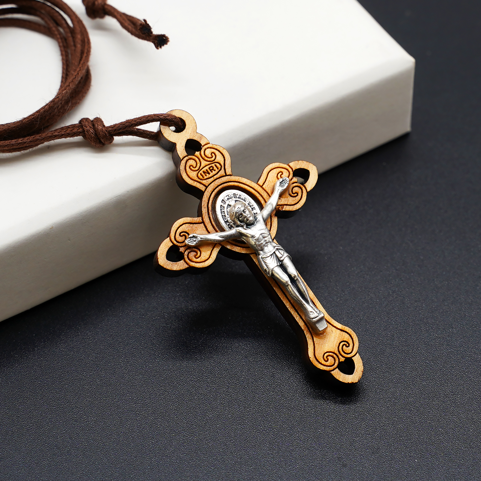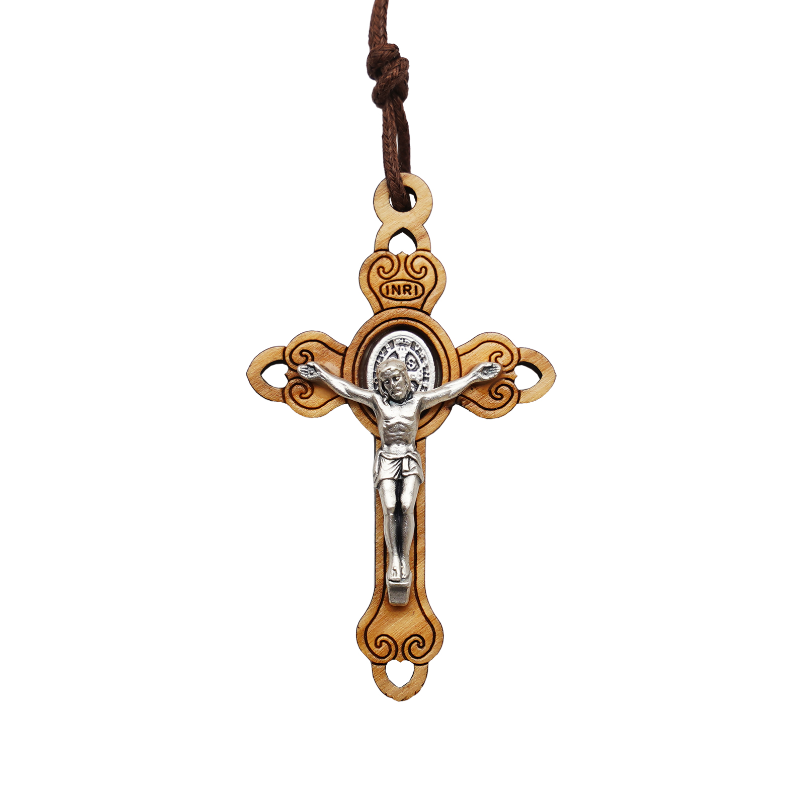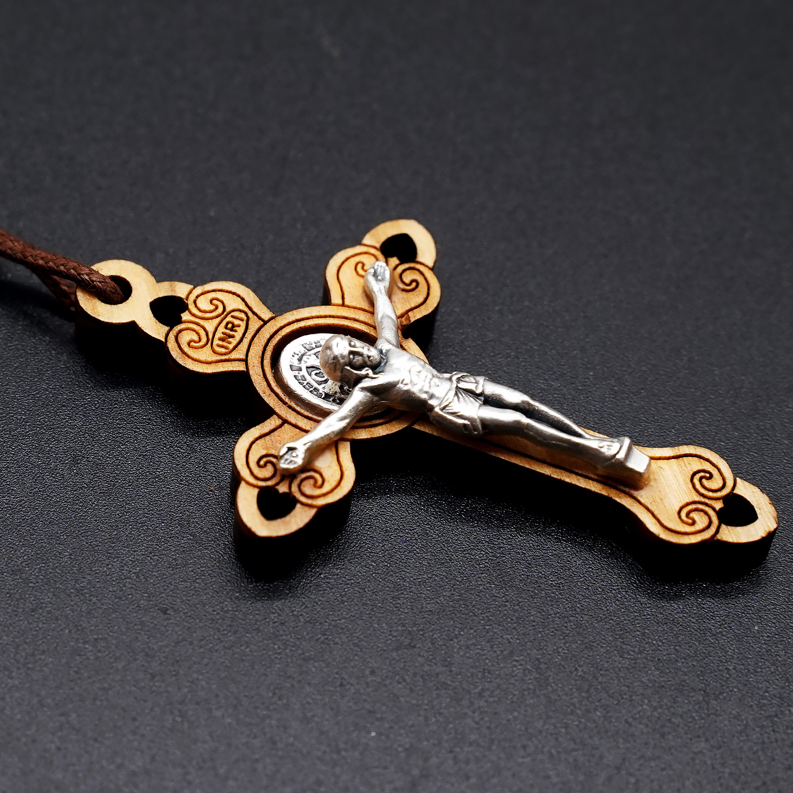 十字架-圣本笃-橄榄木-合金圣尸带绳-5.3×3.3cm