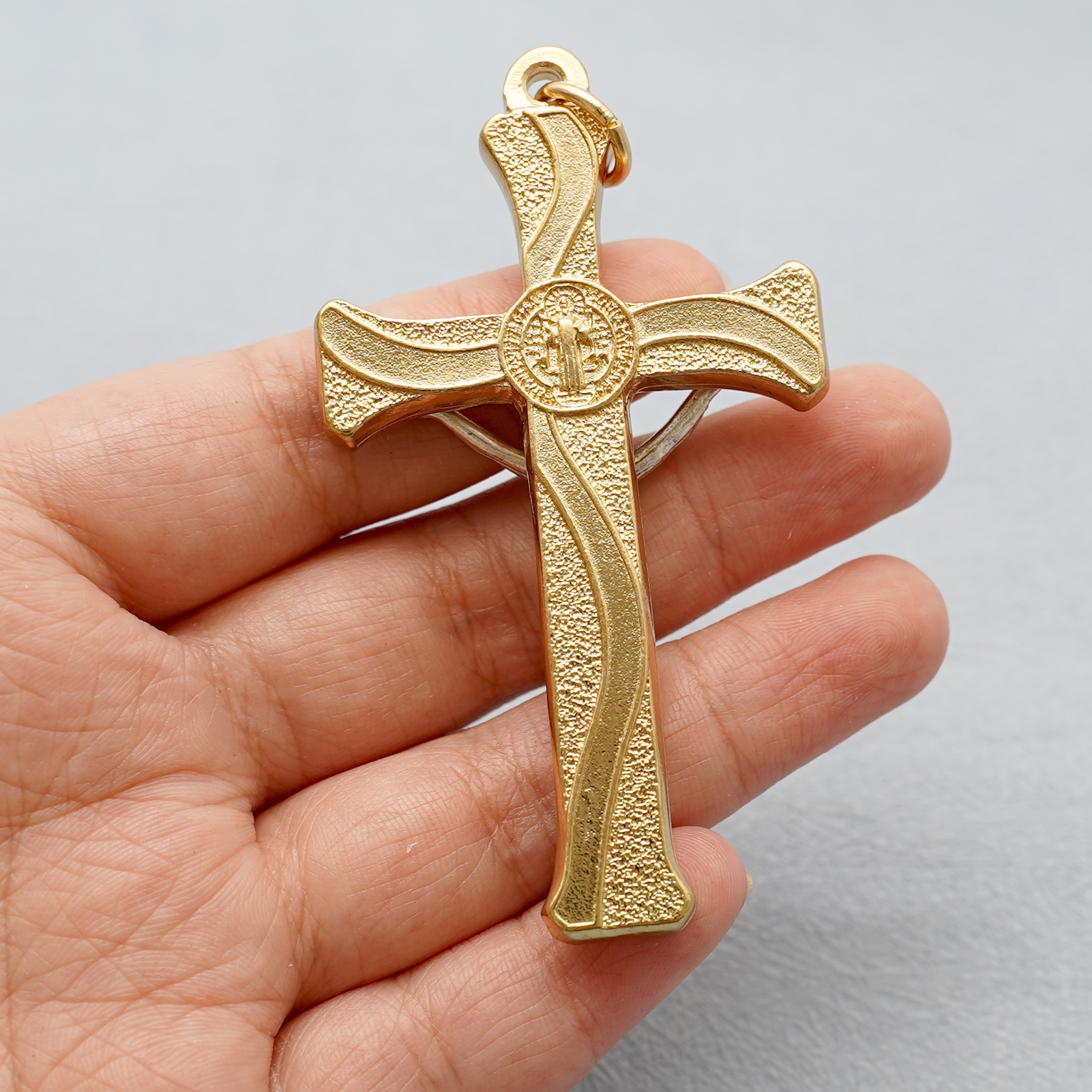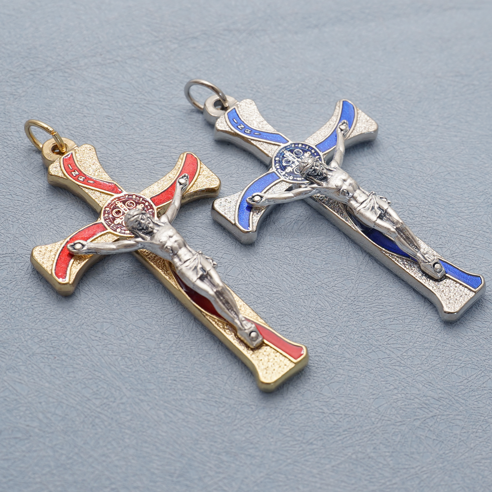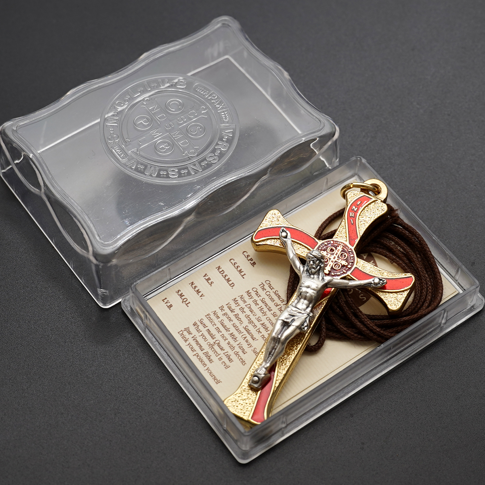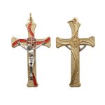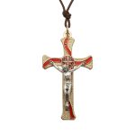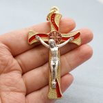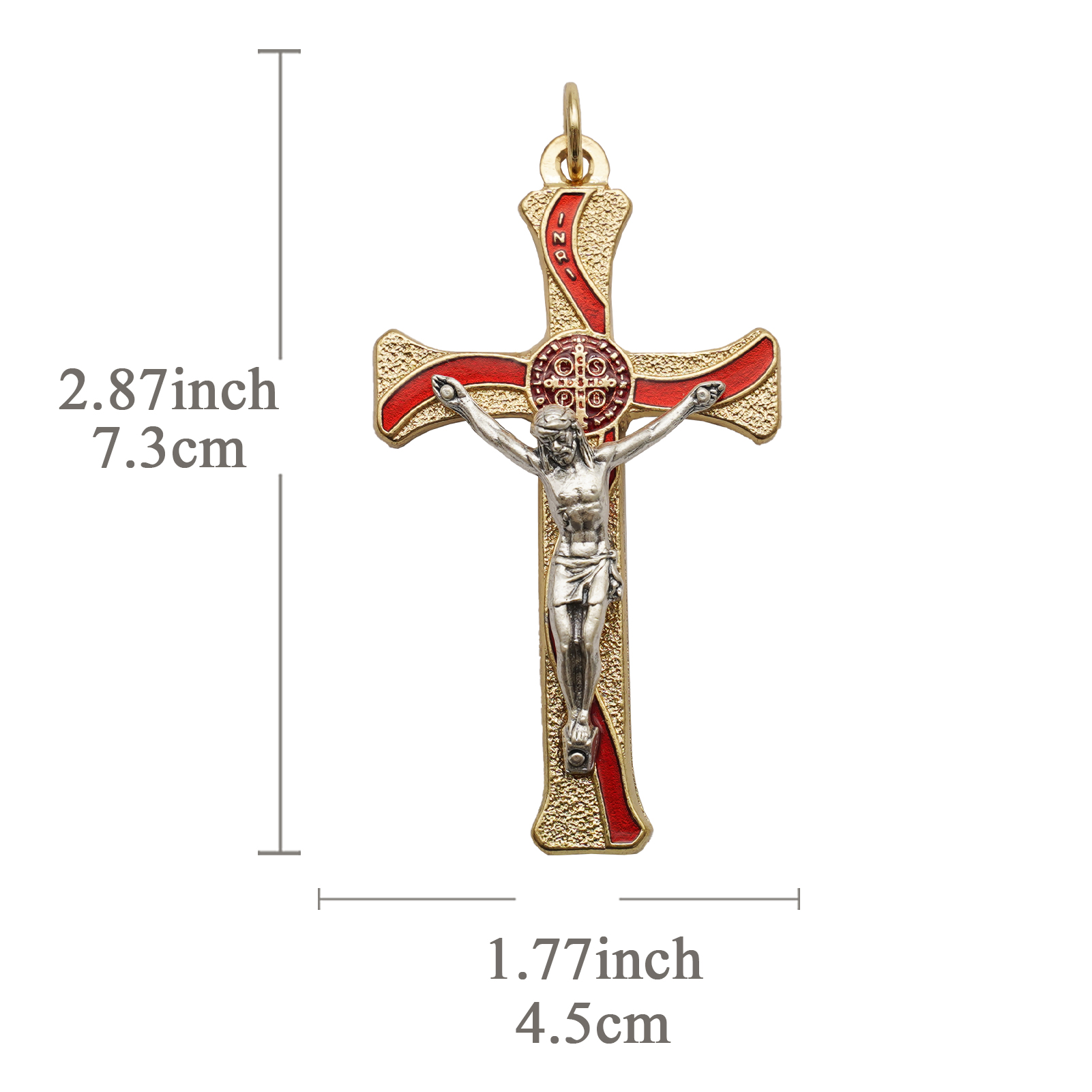 十字架-圣本笃-锌合金-金色-红珐琅-带包装盒-7.3×4.5cm