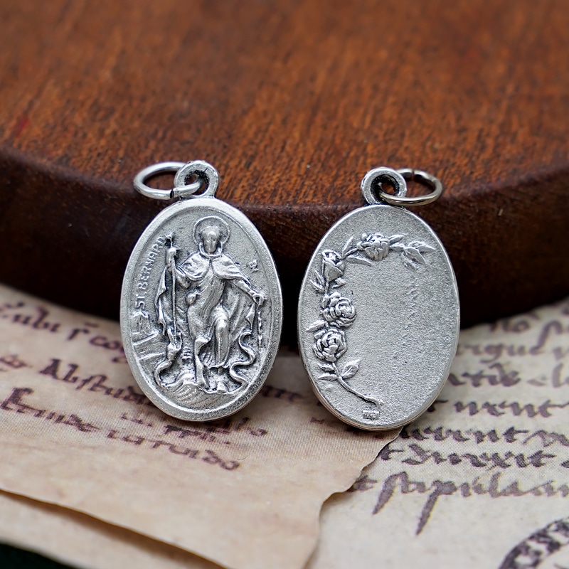 DIY小吊牌-圣伯尔纳铎+玫瑰花-锌合金-2.2cm