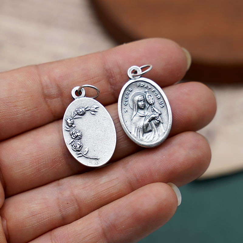 DIY小吊牌-圣女加辣+玫瑰花-锌合金-镀银-2.2cm