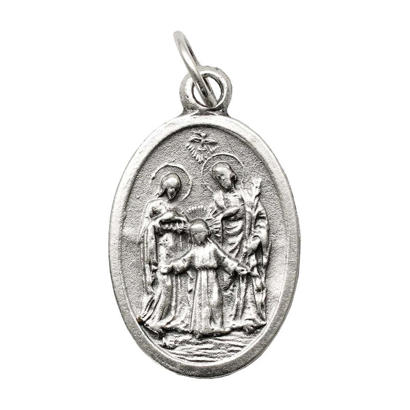 Beautiful St. Family Catholic sacred medal, made in Italy, silver-plated alloy, perfect for DIY rosary making, 2.2 cm height.