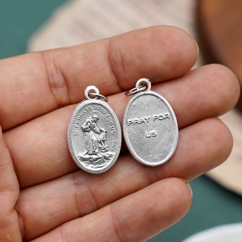 DIY小吊牌-方济各和狼+字-锌合金-2.2cm