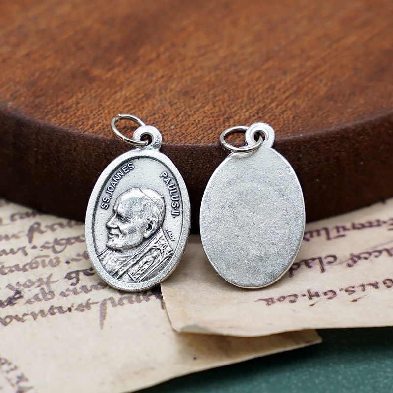 DIY小吊牌-圣教宗若望保禄二世-锌合金-镀银-2.2cm