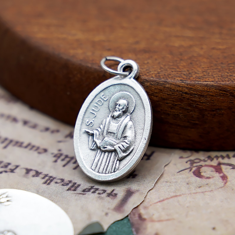 DIY小吊牌-圣达陡+玫瑰花-锌合金-镀银-2.2cm