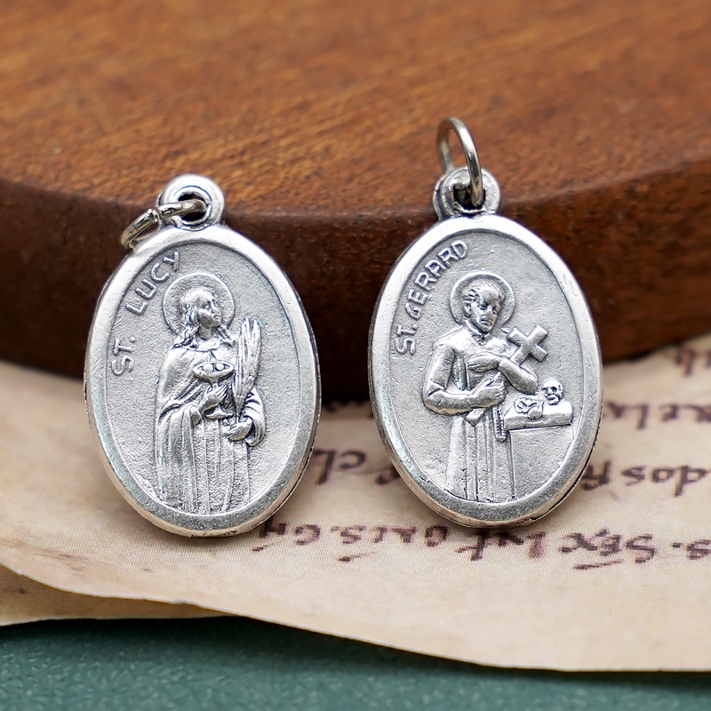 St. Lucia and St. Gerald Catholic medal, 2.2 cm in diameter, perfect for DIY projects and as a pendant or rosary addition.