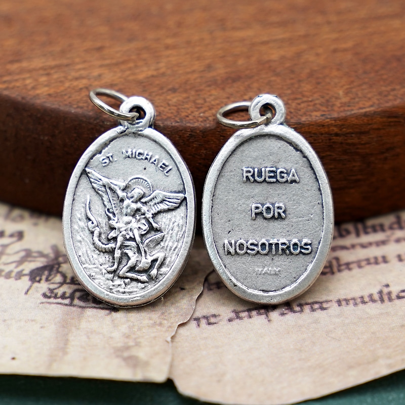 This St. Michael Catholic medal is a stunning religious accessory that measures 2.2 cm in diameter. It is perfect for DIY enthusiasts who want to incorporate it into their rosary creations or other religious jewelry. The medal features the image of St. Michael, the patron saint of warriors, and is made with high-quality materials for durability and longevity. Add a touch of spirituality to your accessories with this beautiful St. Michael Catholic medal.