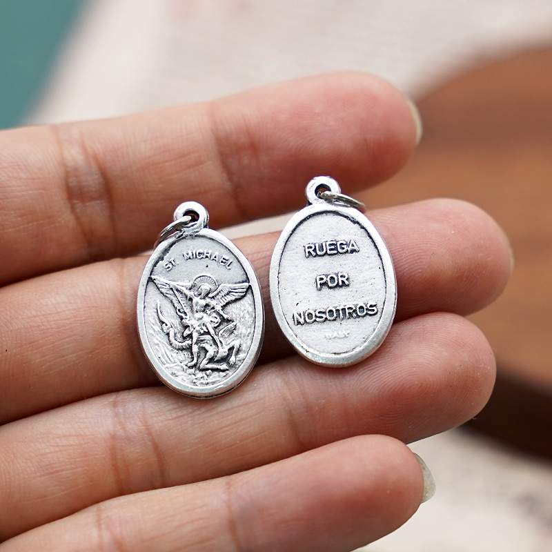 Beautiful St. Michael Catholic medal, 2.2 cm in diameter, ideal for DIY rosary projects and religious jewelry creations.