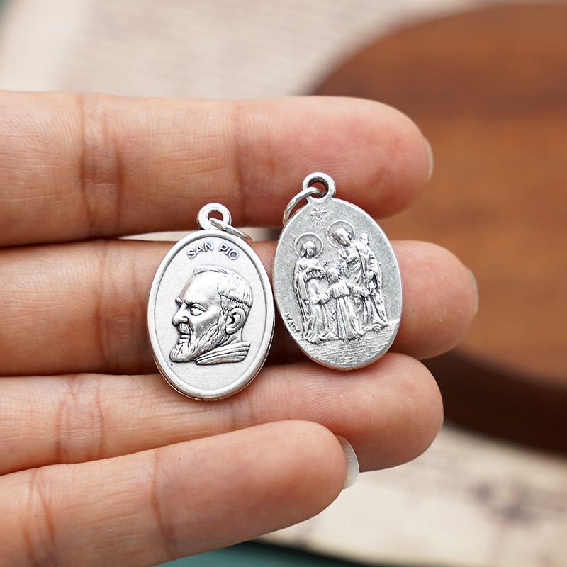 This St. Pio of Pietrelcina Holy Family Catholic medal is a perfect addition to any DIY rosary project. With a diameter of 2.2 cm, this medal is made of high-quality materials that are durable and long-lasting. The intricate detailing on the medal showcases the Holy Family, making it a meaningful and spiritual accessory. Whether you are creating a personalized rosary or simply looking for a religious charm, this St. Pio of Pietrelcina Holy Family Catholic medal is an ideal choice.