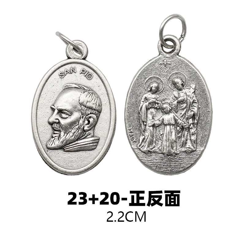DIY小吊牌-庇护神父+圣家-锌合金-镀银-2.2cm