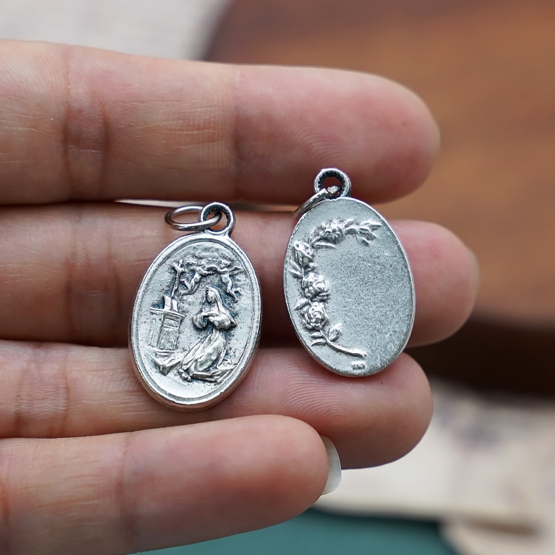 Beautiful St. Rita of Cascia Catholic medal, 2.2 cm, perfect for DIY rosaries and religious jewelry projects. Crafted with attention to detail, it features the image of the patron saint of impossible causes.