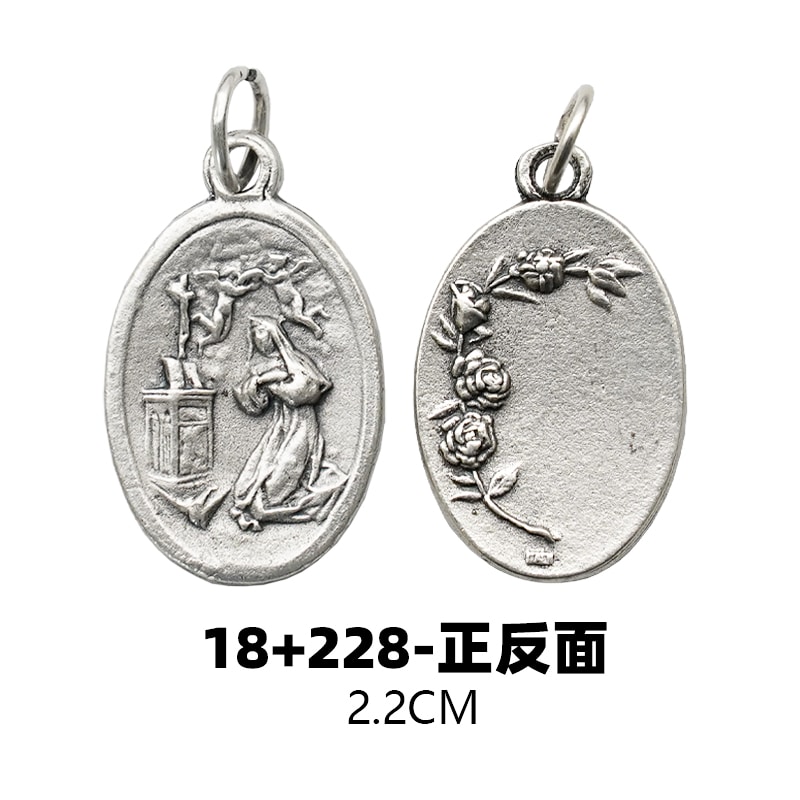 DIY小吊牌-圣妇丽达+玫瑰花(S. Rita)-锌合金-镀银-2.2cm