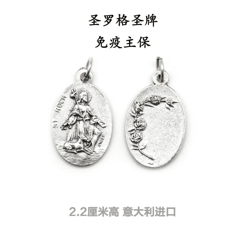 DIY小吊牌-圣罗格+玫瑰花-锌合金-镀银-2.2cm