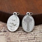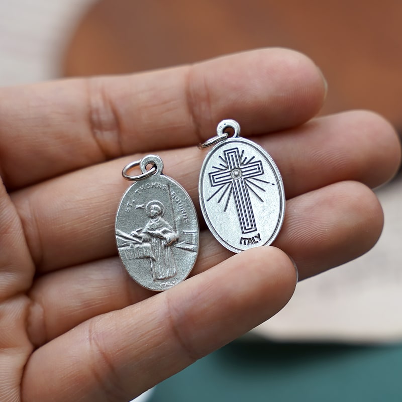 DIY小吊牌-圣托马斯·阿奎纳+十字架-锌合金-镀银-2.2cm