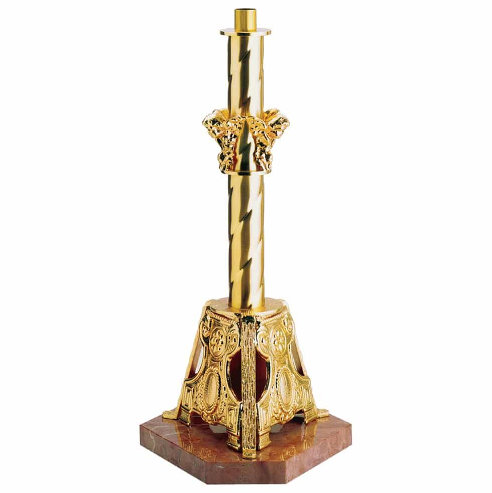 Stand for a cross with ornated castings, cherubs on the central node, and a base in Verona red marble.