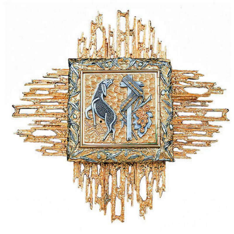 双色黄铜铸造圣体龛(金/银),门尺寸27×27厘米,内盒27x27x30厘米,放射线84×84厘米