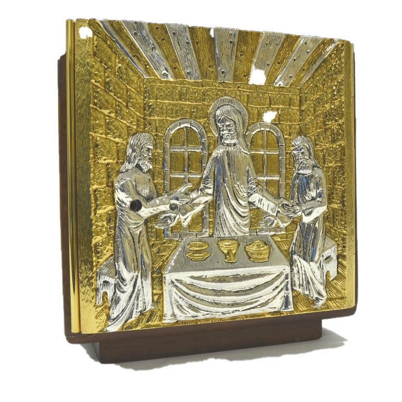 木制桌面圣体龛,双色黄铜铸造门(银/金),内饰24K金色,尺寸(宽x高x深)22x22x22厘米