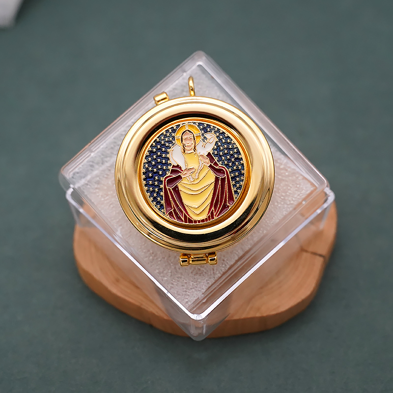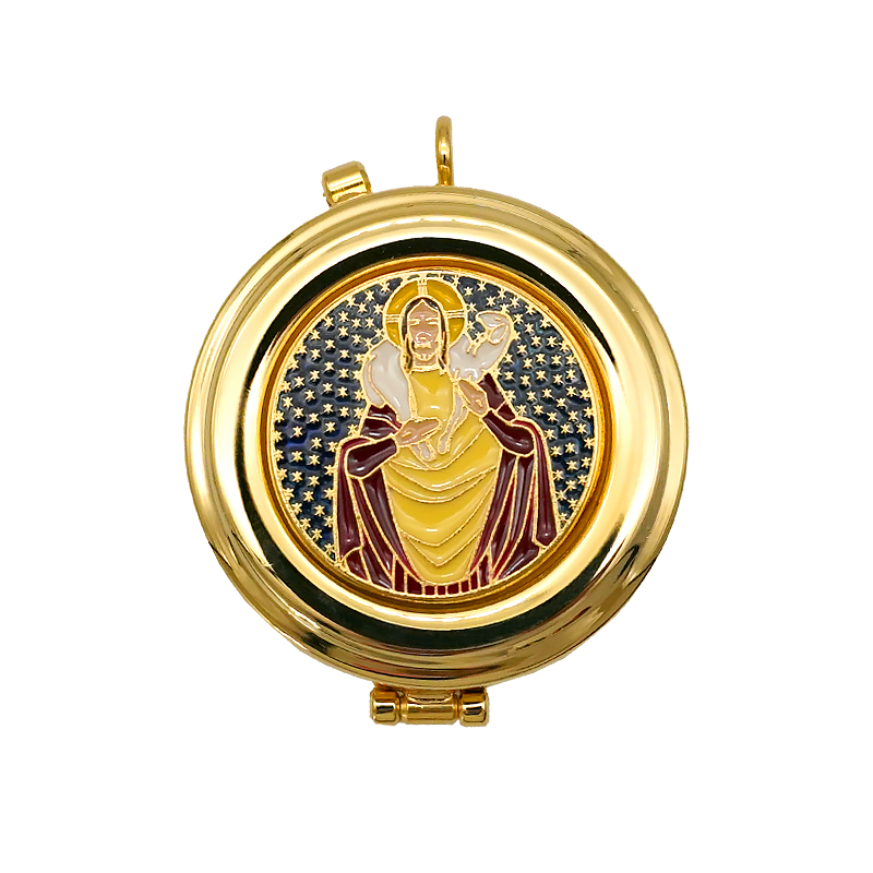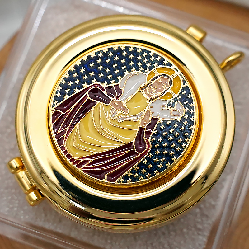 【现货】便携圣体盒-珐琅善牧图案-直径5cm