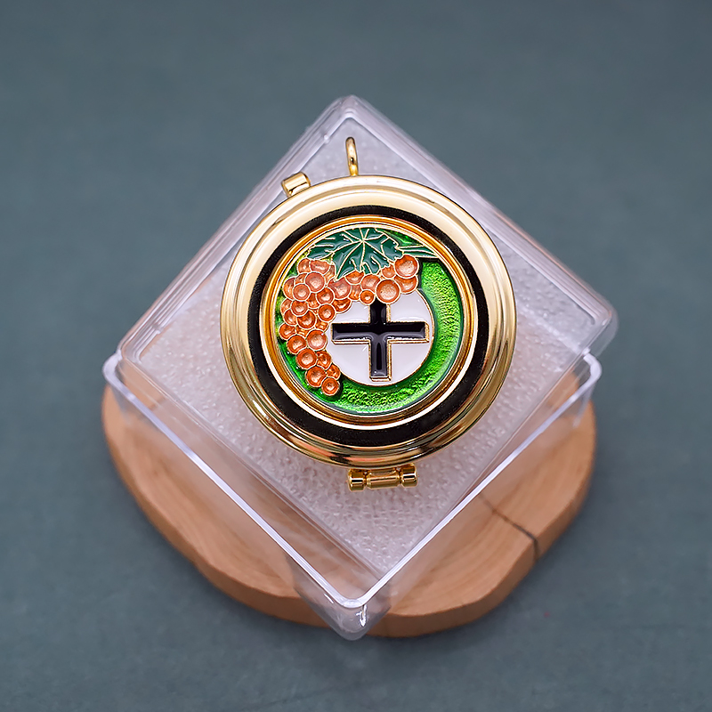 【现货】便携圣体盒-珐琅葡萄与十字-直径5cm