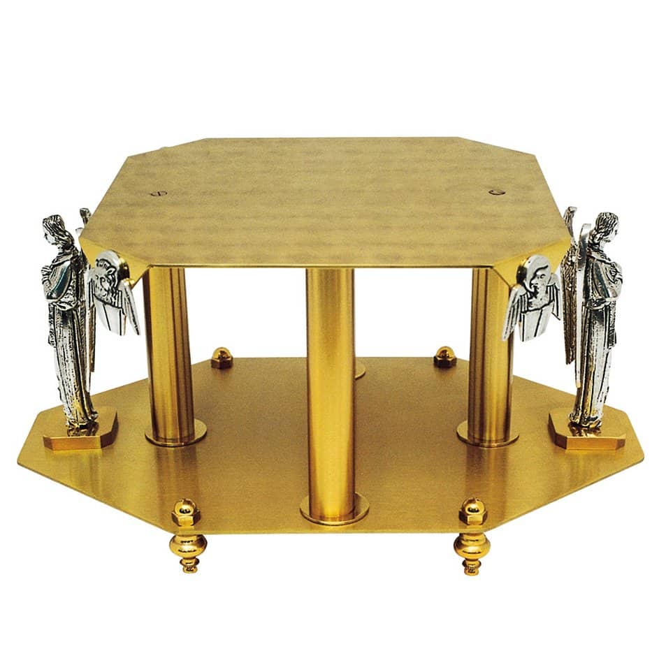 Golden thabor with silvered angels at the sides. Silvered symbols of the four Evangelists adorn the corners of the top shelf.