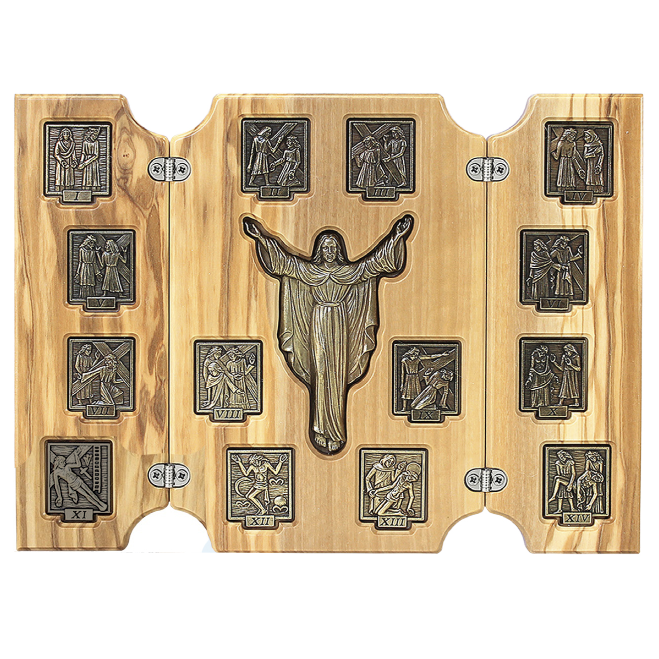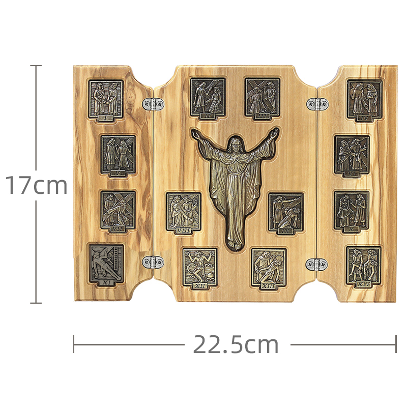 三联橄榄木苦路 方形合金牌 古铜色 救世主基督 古铜色 17×22.5cm