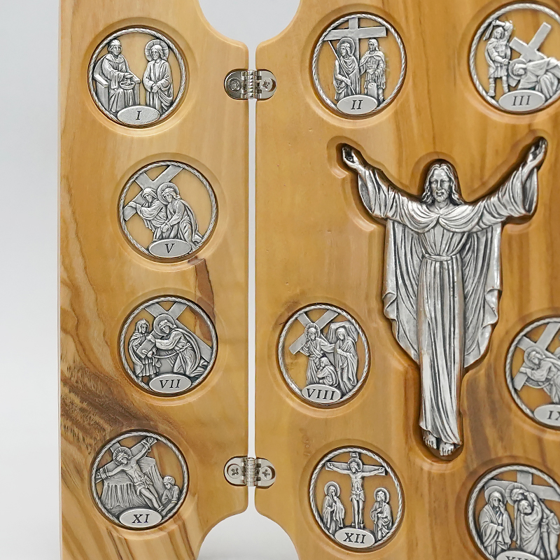 双联橄榄木苦路-圆形合金牌-镀银基督-救世主-17x22.5cm