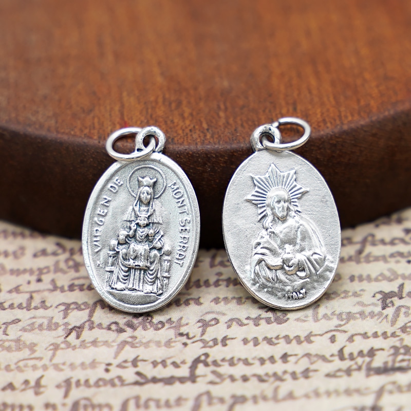 DIY小吊牌-蒙特塞拉特黑圣母+耶稣圣心-锌合金-2.2cm