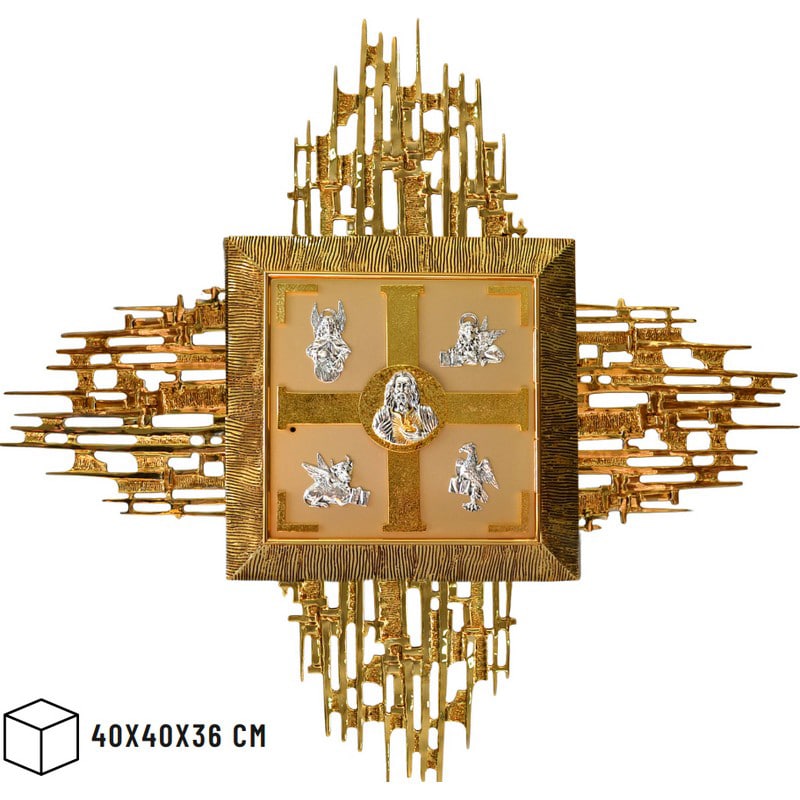 铸造黄铜壁挂圣体龛,门尺寸40×40厘米,内盒40x40x36厘米,放射线125×125厘米