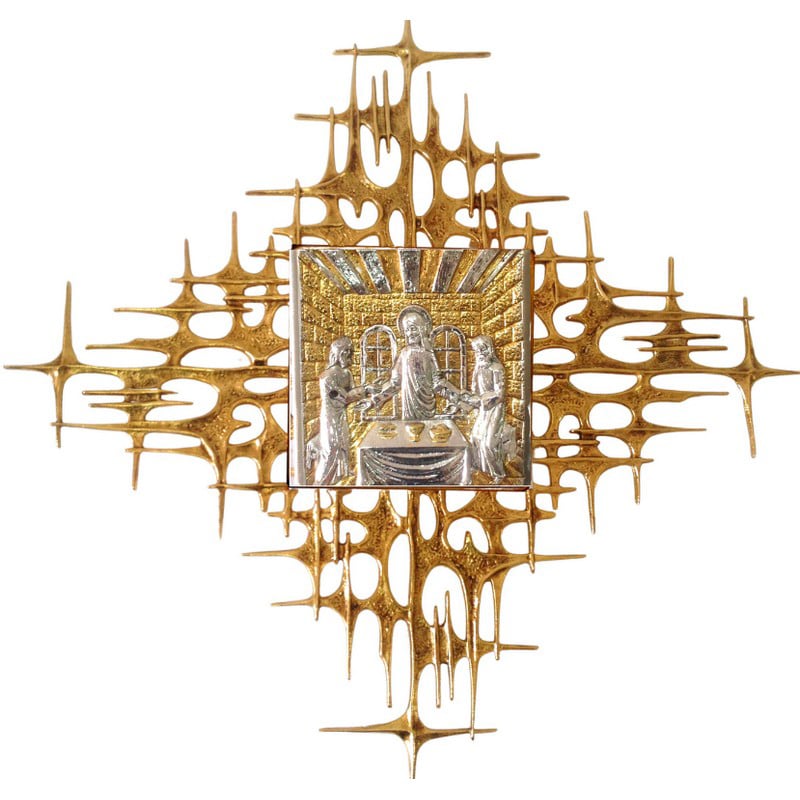 壁挂式圣体龛,双色黄铜铸造门(银/金),内饰24K金色,尺寸(宽x高x深)22x22x22厘米,放射线73×73厘米