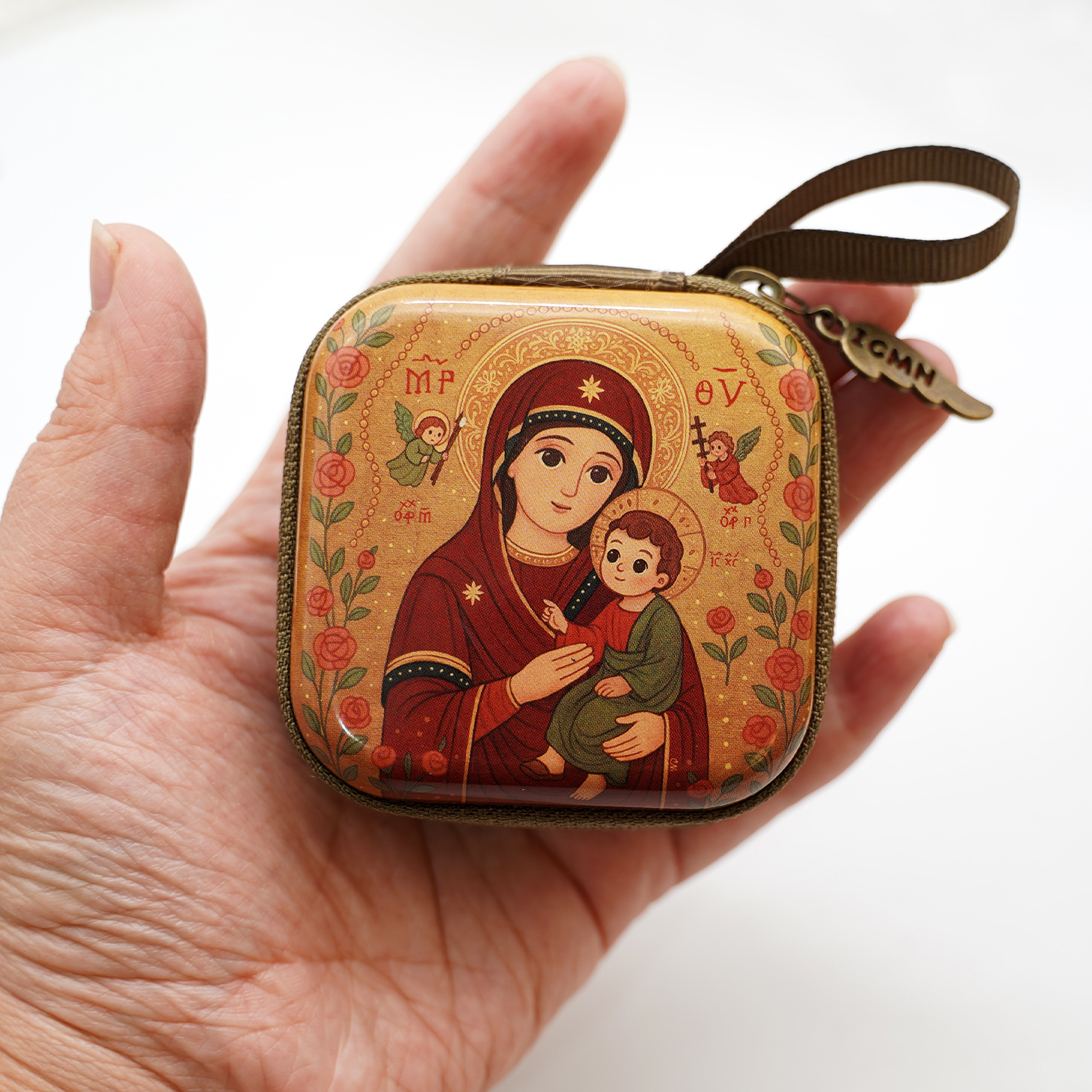 Metal Rosary Case – Our Lady of Perpetual Help – Metal – Zipper -7x7x3.3cm