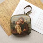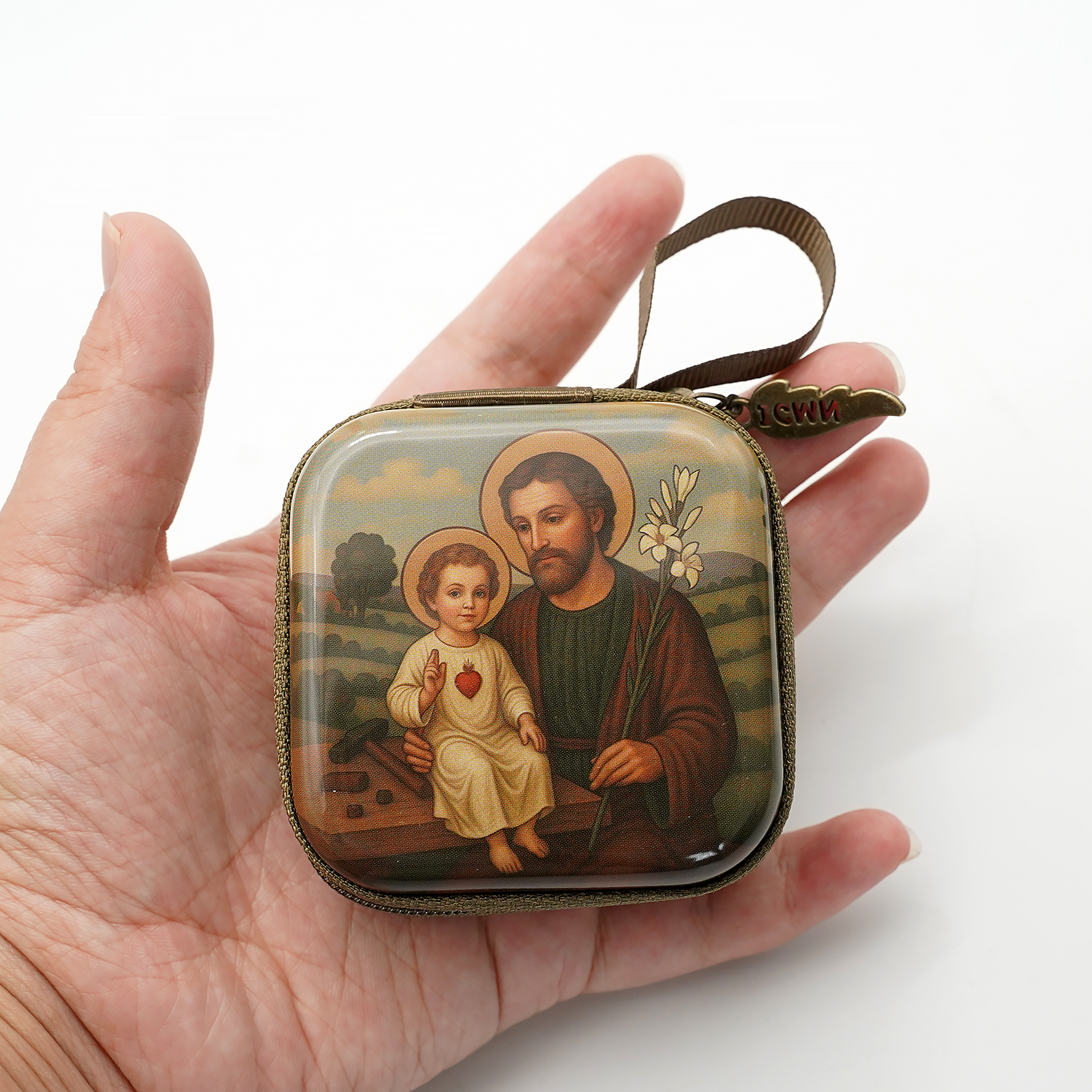 Rosary Case – St. Joseph with Jesus – Metal – Zipper – 7x7x3.3cm