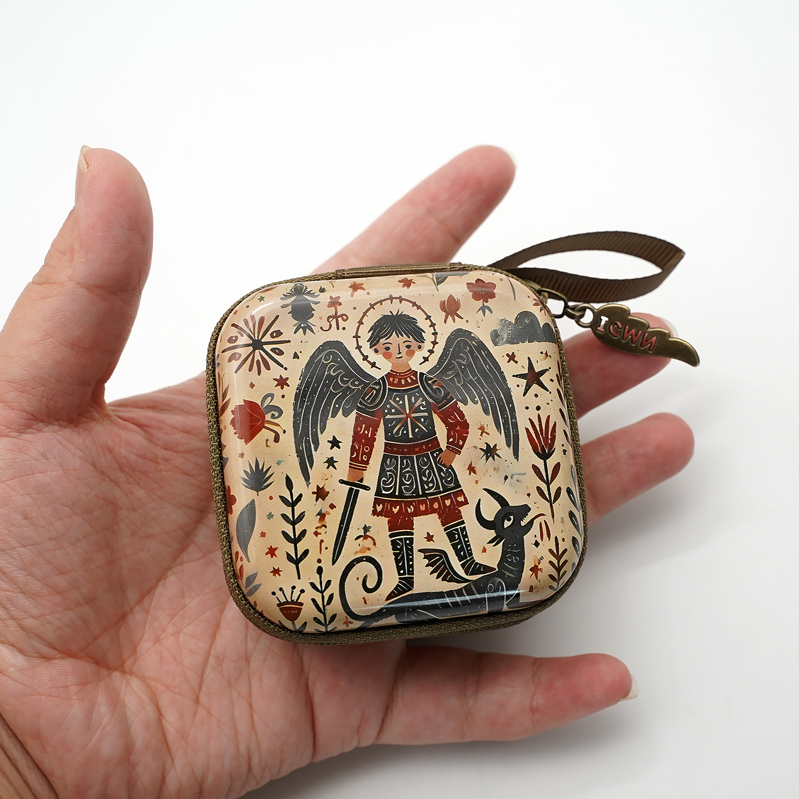 Rosary Case – Michael – Metal – Zipper – 7x7x3.3cm